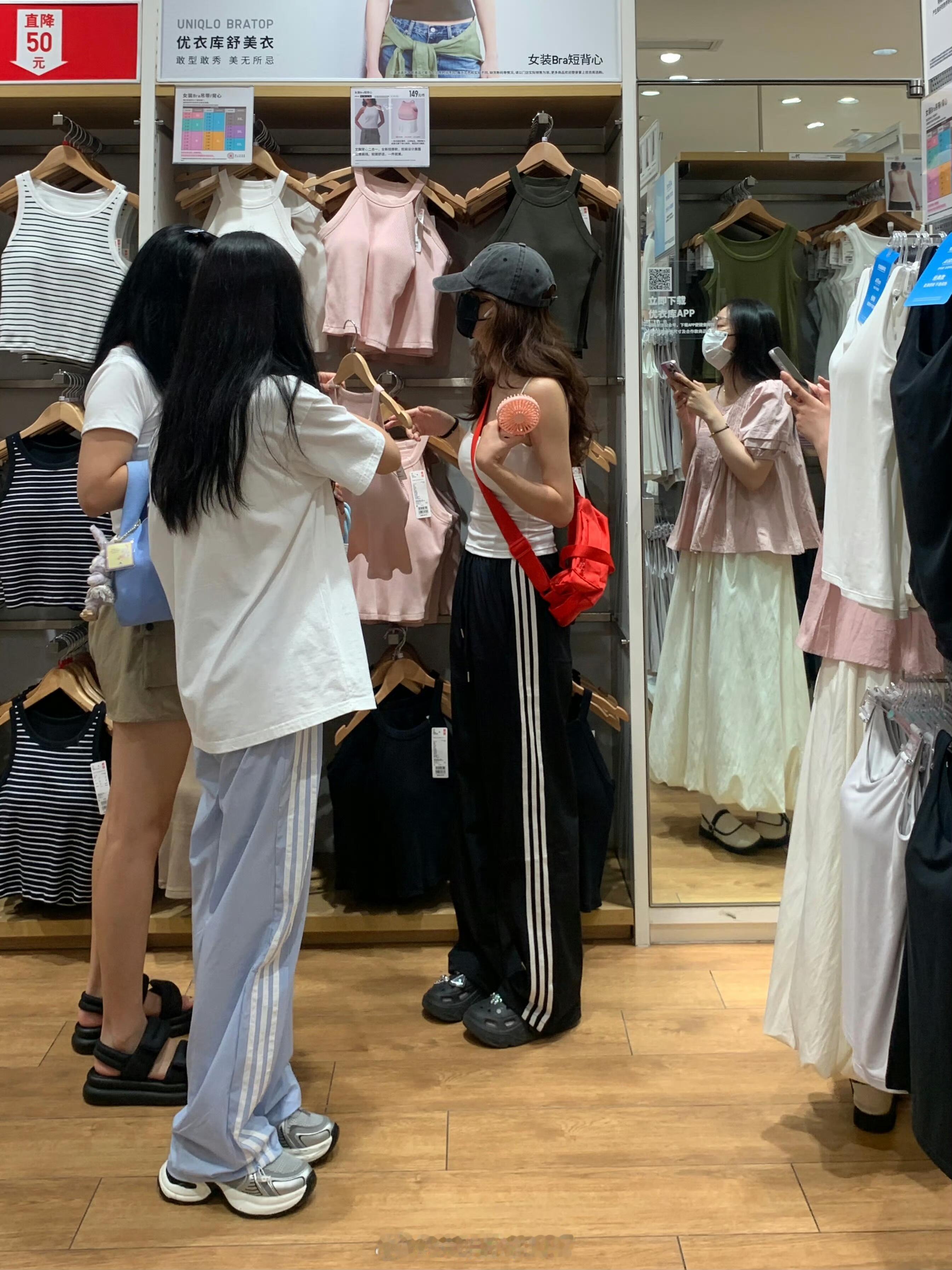 不会穿搭真的别乱学网上穿搭了。。。不是,,今天跟朋友出去玩,穿了一身蓝色系,还搭配了宽松短袖,就是想营造一种贼帅的高冷感结果被朋友拍了张背影照。。我真的蚌埠住了!!真的没有我闺蜜的背心搭配的好看啊,同样的裤子看着我还没她腿长。。。所以这种裤子到底该怎么搭啊