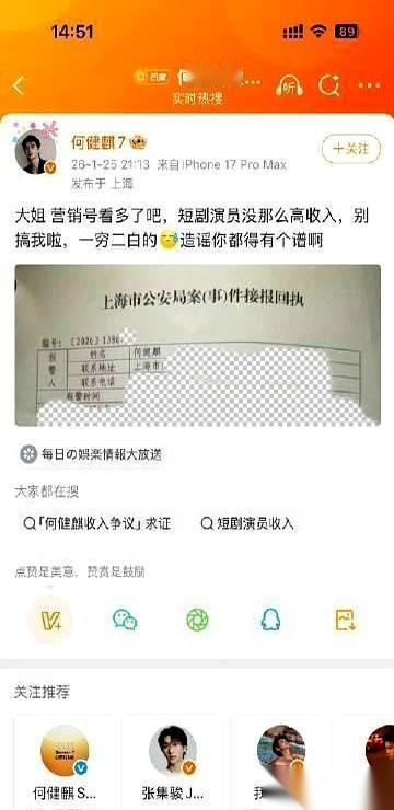 何建麒的整个职业生涯,现在就悬在一张报警回执上。 前女友刚从派出所做完笔录出来,他这边立刻隔空喊话:“已经报警追责!” 工作室的红头文件声明甩了出来,底下瞬间刷满了四个字:“回执呢?” 他就是不给。 这个场景,像极了去年。那次不是回执,是“榜一大姐”甩出的一沓聊天记录。代价更直接,于正剧组的一个配角,直接把他踢了出去。 旧账还没翻篇,新雷又炸了。 偏偏他的新短剧《君心似疾》刚刚开播,宣传海报还热乎着,评论区已经变成了追债现场。 这已经不是爱恨纠葛了。 这就是一堂公开课:在今天的娱乐圈,一万封律师函的威慑力,都顶不上一张轻飘飘的报警回执。
