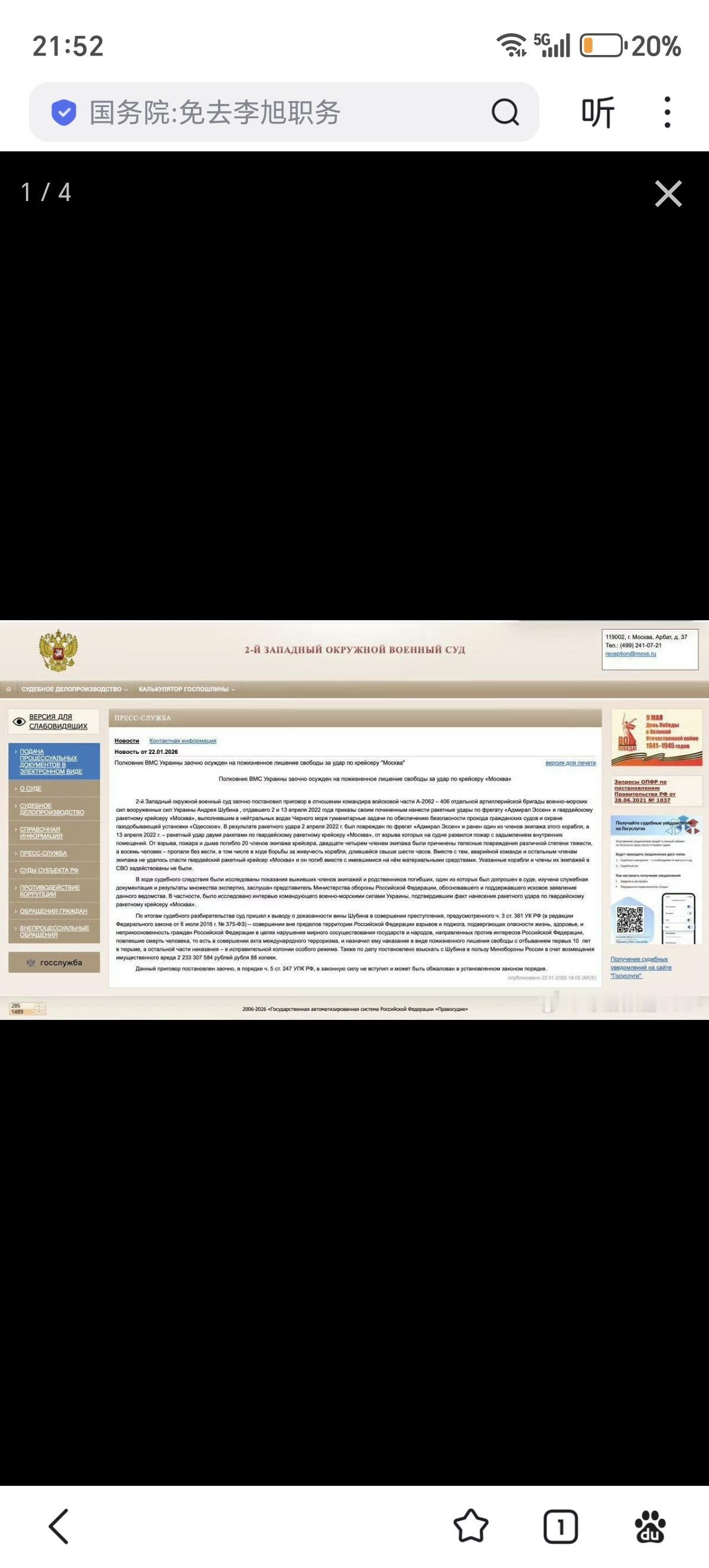 光荣级莫斯科号导弹巡洋舰因海王星反舰导弹(相当于C802AKG)命中导致损失20人、伤24人、失踪8人,时任俄黑海舰队司令奥西波夫被军法审判。 经过3年多的时间,自谢恩菲尔德之后大型水面战舰实战被击沉的过程终于水落石出。