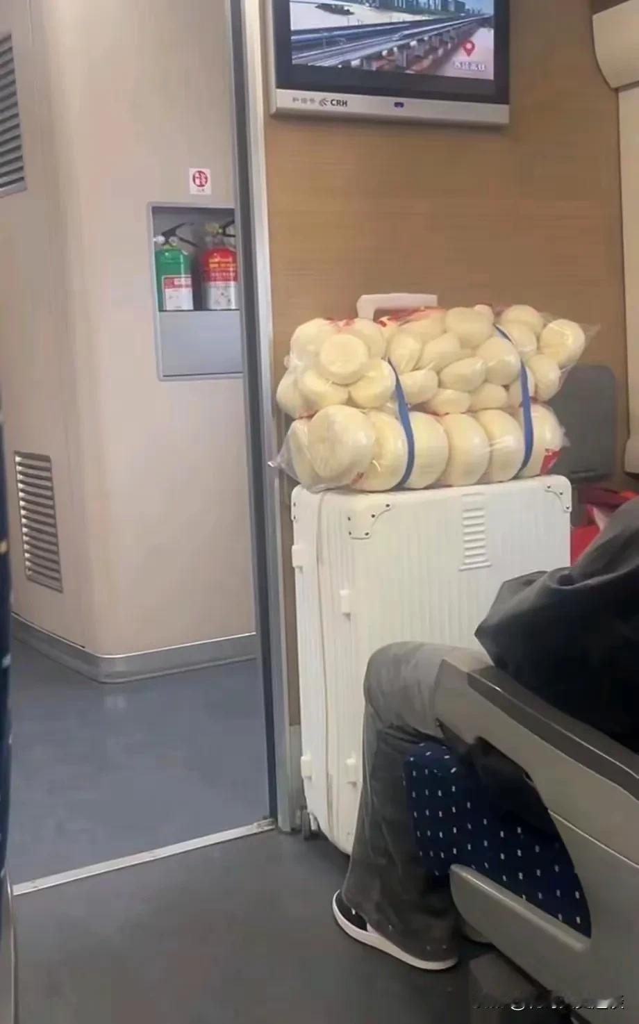 在高铁上看到惊人的一幕,一位老大爷坐高铁,带着一个大行李箱,行李箱上放着满满的一大袋子馒头,还有大一点的,小一点的。真的不明白,他为什么带这么多馒头,这是给远方的儿女们带的吗? 或许他们是北方人,以面食为主,儿女们都在南方,想吃一下老家的馒头,所以父母就给他们带了满满的一大袋。按说现在馒头全国都可以买到的呀。有必要费这么大的力气,带那么远吗?