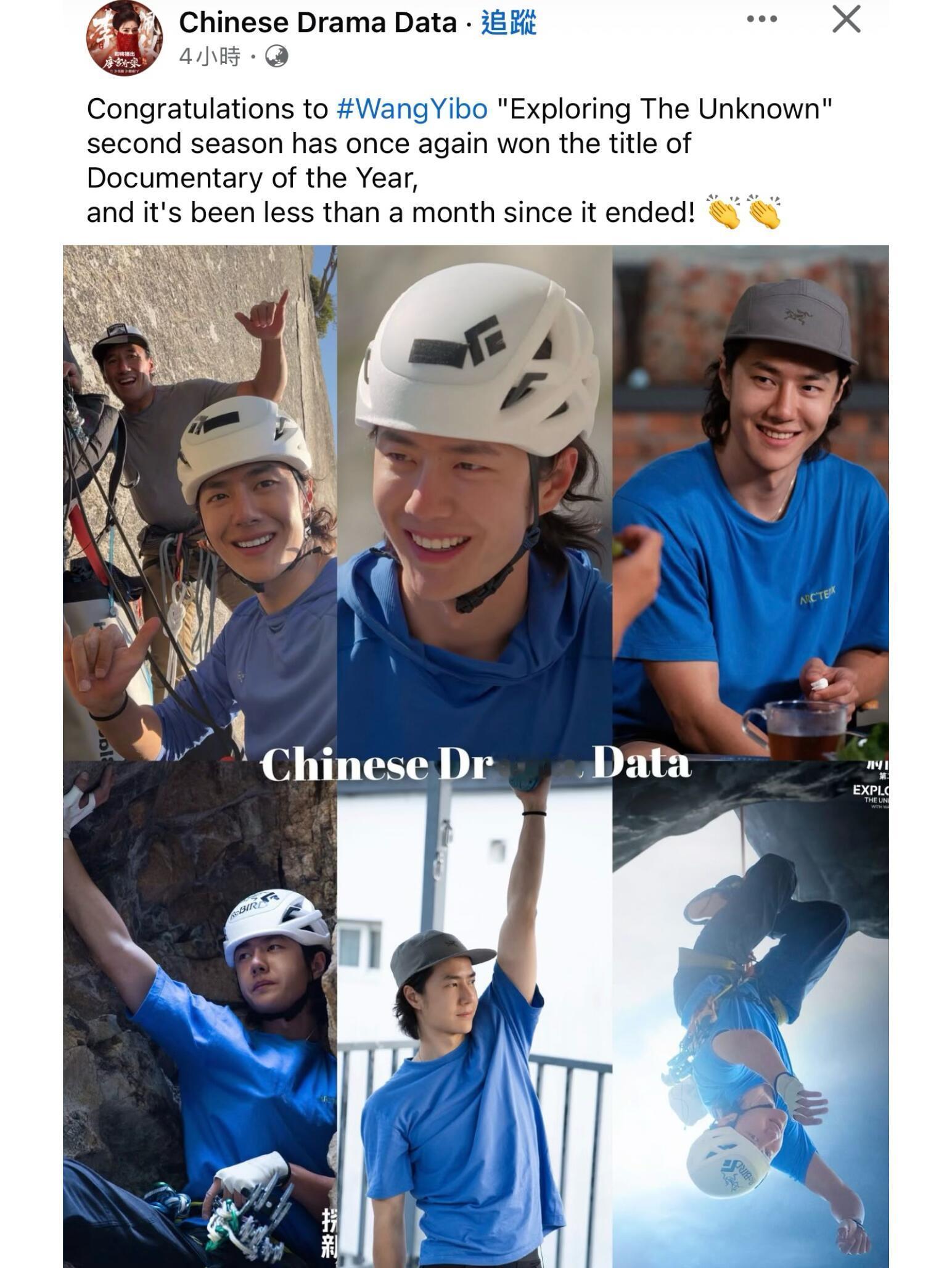 外媒报道:恭喜了王一博探索新境2在完结不到一个月的时间里又获得了年度纪录片荣誉目