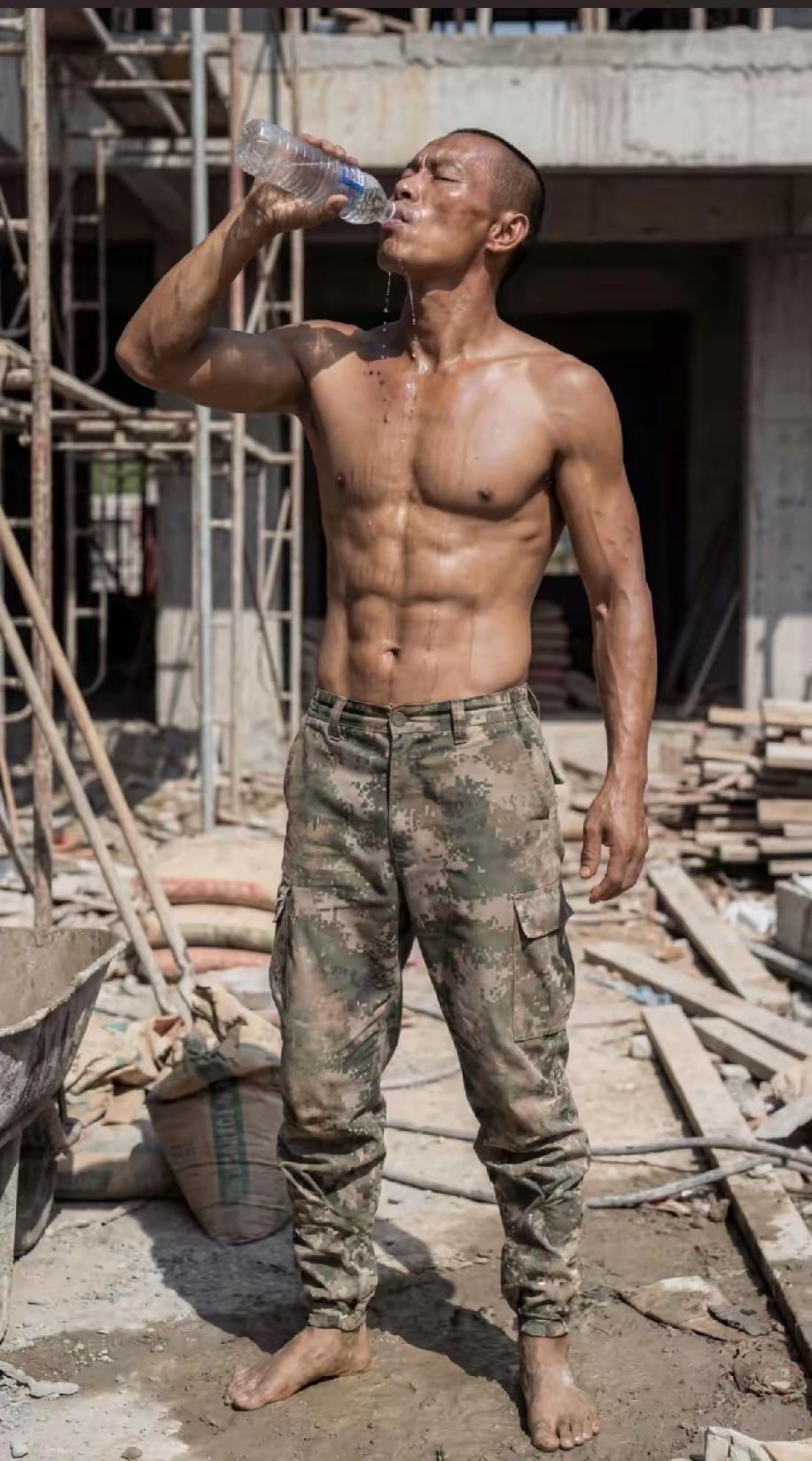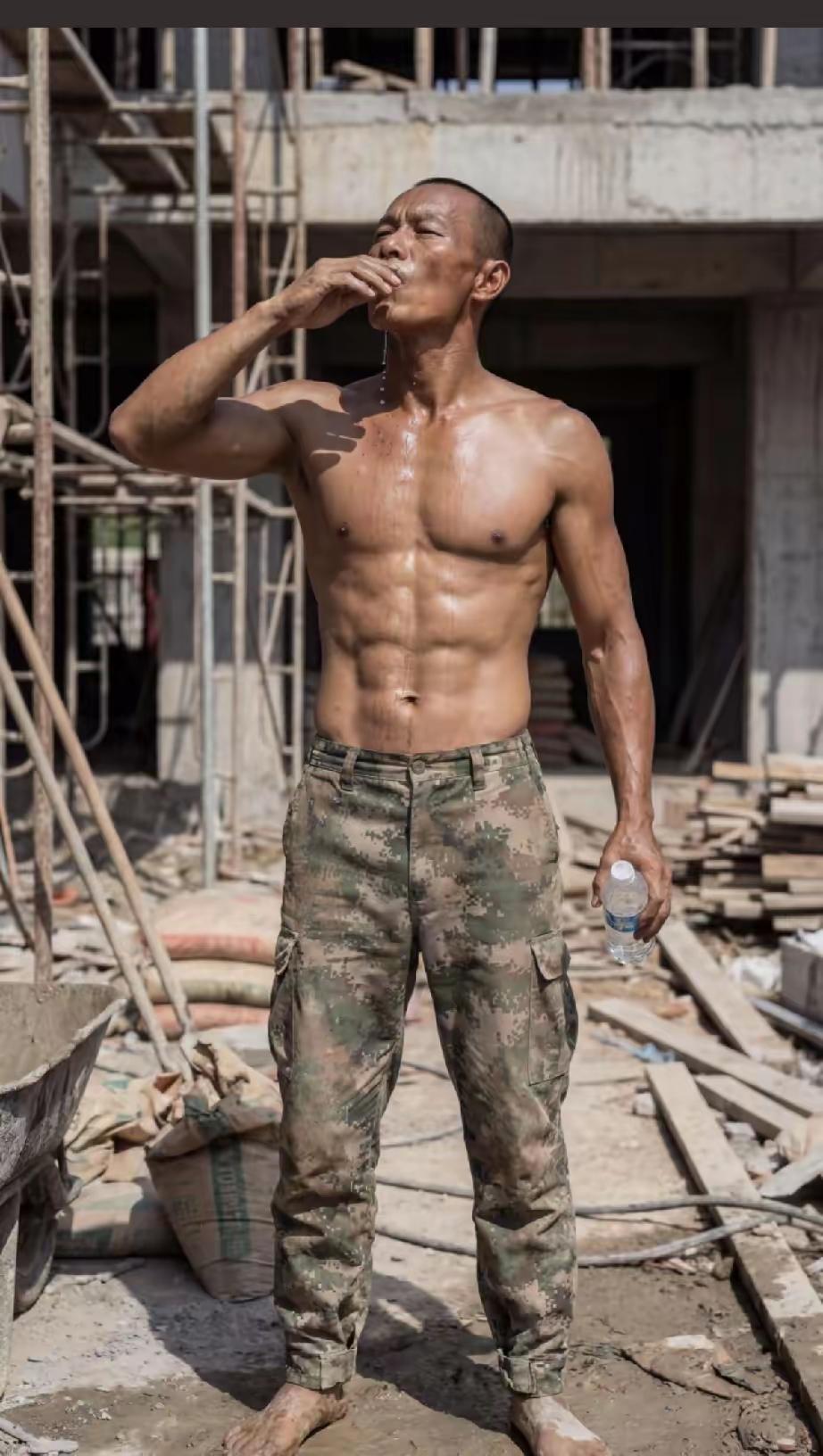 这样的农民工你见过吗?浑身的腱子肉,荷尔蒙爆棚! 连喝口水都这么有味,如果他生活在有钱人家,肯定是霸道总裁加帅气直男!