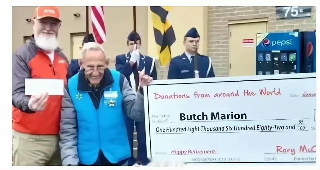 82岁的Marion在沃尔玛超市的收银台后站了16年,直到被一位TikTok博主偶然发现,这场持续了十几年的坚守才终于有了收尾。可能没人会特意留意,这个头发花白、动作有些迟缓的老人,每天都会准时出现在收银岗位上,扫码、收款、找零,重复着一套早已熟练到刻进骨子里的流程,一干就是整整16年,从66岁干到了82岁。 这个叫沃伦·马里昂的老人,大家都习惯叫他布奇,在被TikTok博主罗里·麦卡蒂偶然发现前,他只是超市里一个容易被忽略的普通收银员,没人知道他背后的故事,更没人想到,一场爱心接力会为他的坚守画上温暖句号。 麦卡蒂那天只是来超市买几节电池,排队时注意到了布奇。看着老人费力却认真地核对每一笔账单,他忍不住上前搭话,这一聊才知道,眼前这个82岁的老人不只是个普通收银员,还是一名退役海军老兵,有着几十年的工作履历。 布奇年轻时在通用汽车和霍尼韦尔打拼过,还在海军服了十年兵役,从11岁起就没停下过工作的脚步。本该安享晚年的年纪,他却要每天在收银台站八九个小时,一周工作三十多个小时,支撑他的不是热爱,而是生活的无奈。 2005年,布奇的妻子因乳腺癌去世,在此之前,他还曾放弃退休机会,悉心照料前妻和她的第一任丈夫直至两人离世。 接二连三的家庭变故,加上一身债务,让本就不算宽裕的他彻底没了退休的资本。为了维持生计,66岁的布奇走进了沃尔玛,一待就是16年。 这些年里,他很少提及自己的难处,只是默默坚守在岗位上,用日复一日的重复劳动扛起生活的重担,就连远在佛罗里达的女儿和孙辈,他都因为经济拮据常年无法探望。 麦卡蒂听完后心里满是触动,他想起不久前有博主通过网络众筹,帮助一位同龄沃尔玛员工成功退休,便下定决心要帮布奇一把。 作为拥有27.9万粉丝的TikTok博主,麦卡蒂拍下一段42秒的视频,镜头里的布奇穿着工作服认真收银,配文写道:“82岁的布奇还在坚持工作,有人见过有人筹了18万美元帮老人退休的视频吗?我们也为布奇这么做吧,有人愿意捐款吗?” 没人想到,这段朴素的视频会迅速引发全网共鸣,数百万播放量背后,是来自世界各地网友的爱心涌动。麦卡蒂紧接着搭建了众筹页面,承诺每一分钱都直接交给布奇,还请布奇的女儿珍妮特作证,打消大家的顾虑。 网友们纷纷伸出援手,从几美元到几百美元,捐款金额不断攀升,很快就突破了10万美元的目标,最终定格在15.2万美元。 当麦卡蒂把一张10.8万多美元的支票送到布奇面前时,这位坚守了十几年的老人难掩激动,反复念叨着“我怎么会这么幸运”。 压在心头多年的债务终于能还清,他终于可以卸下重担,去佛罗里达看望思念已久的家人,去做那些因为生计而搁置的事。 拿到捐款后,布奇当即向沃尔玛递交了辞呈,结束了自己16年的收银生涯,也结束了一辈子为生活奔波的辛劳。 从默默无闻到全网牵挂,布奇的故事之所以动人,不仅因为那份跨越十几年的坚守,更因为陌生人之间毫无保留的善意。 在这个充斥着快节奏的时代,布奇用最朴素的坚持对抗生活的磨难,而麦卡蒂和无数网友则用爱心,为这位老兵的晚年点亮了希望。 这场偶然的相遇,不仅改写了一位82岁老人的人生,更让我们看到,平凡人的善意汇聚起来,能拥有改变命运的力量。如今的布奇,终于可以放下收银机,带着满心温暖,去拥抱属于自己的悠闲晚年了。