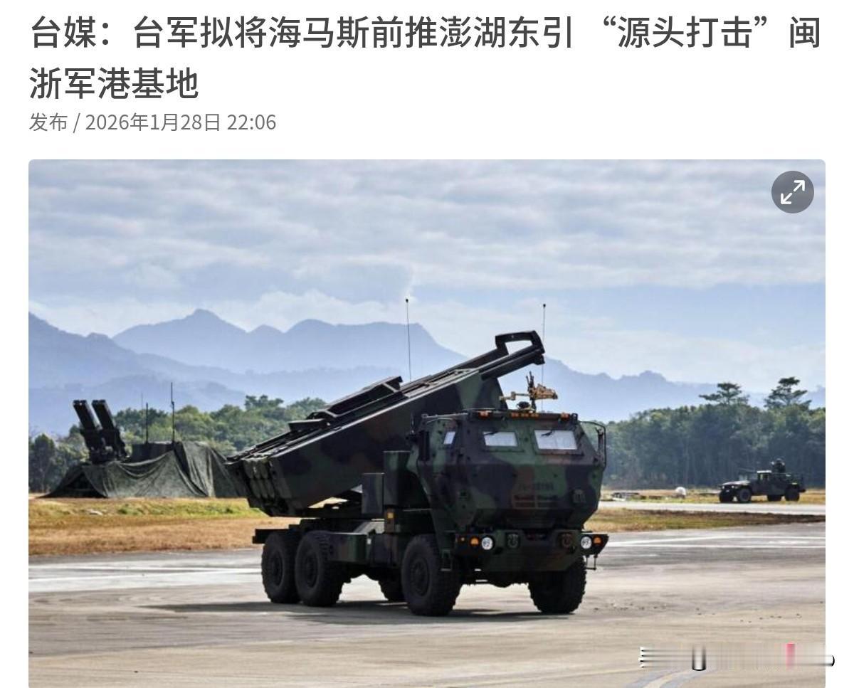 “台独”分子胆子是真肥!岛内台军正在作出部署妄图把福建、浙江境内的解放军军港、导弹基地和机场列为打击目标!1月29日,根据联合早报报道,岛内军政人士称,为因应解放军近年频繁的登陆演习,台军正规划将海马斯系统由台湾本岛“前推部署”至澎湖与东引,并搭配射程达300公里的战术导弹,对解放军进行反制。 而这一部署落地将会让福建福州、宁德,浙江温州、台州等解放军东部战区海军基地均被纳入打击范围之内。岛内声称,这代表台军具备在解放军船团“出港前”就先行摧毁的能力,具备强大的战略威慑意义。很显然,从美国手中购买海马斯系统之后,岛内“台独”分子的胆子是越来越肥。 “台独”分子这是妄图用美制武器,以武拒统,对我们进行震慑。不过,岛内进行这样的军事动作,完全是自不量力,不知死活。我们对于台海周边情势具备完全的主导权,岛内任何军事动作都逃不过我们的侦察卫星,预警机的眼睛。通过军演,我们已经验证了我们发现即摧毁的能力,“台独”想要源头打击那是痴人说梦。 事实上,台湾的外岛一点战略纵深都没有,海马斯一开机就会被解放军侦察、定位、而且其发射高度依赖GPS,被电磁压制下就是“睁眼瞎”,妄图先发制人,那是做梦。当然,岛内的军事动作我们还是应该高度关注,我们要谨防其铤而走险,如果岛内蓄意制造擦枪走火事件,恐怕台湾问题,将很快迎来终局。