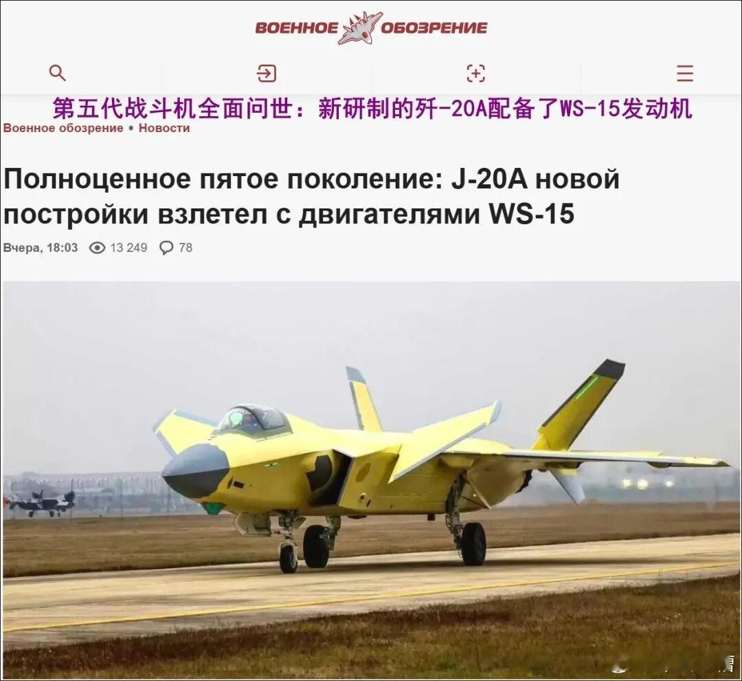 成飞发布涡扇15版歼20量产照片后俄罗斯这边也憋不住了他们称涡扇15的推力超过18吨,超过F22的F119发动机的15.8吨,歼20自此成为了全世界动力最强的双发五代机俄罗斯的心态是既羡慕又嫉妒毕竟苏57早于歼20试飞一年,结果现在列装量还不到歼20的1/10,而且为苏57研制的产品30发动机至今还没有正式装机量产俄罗斯人以前瞧不上中国的航空发动机,但是涡扇15的出现,让他们彻底服气了正如这名俄罗斯网友所说,以前我们认为中国只会抄袭俄罗斯,事实上他们什么都有!烽火问鼎计划