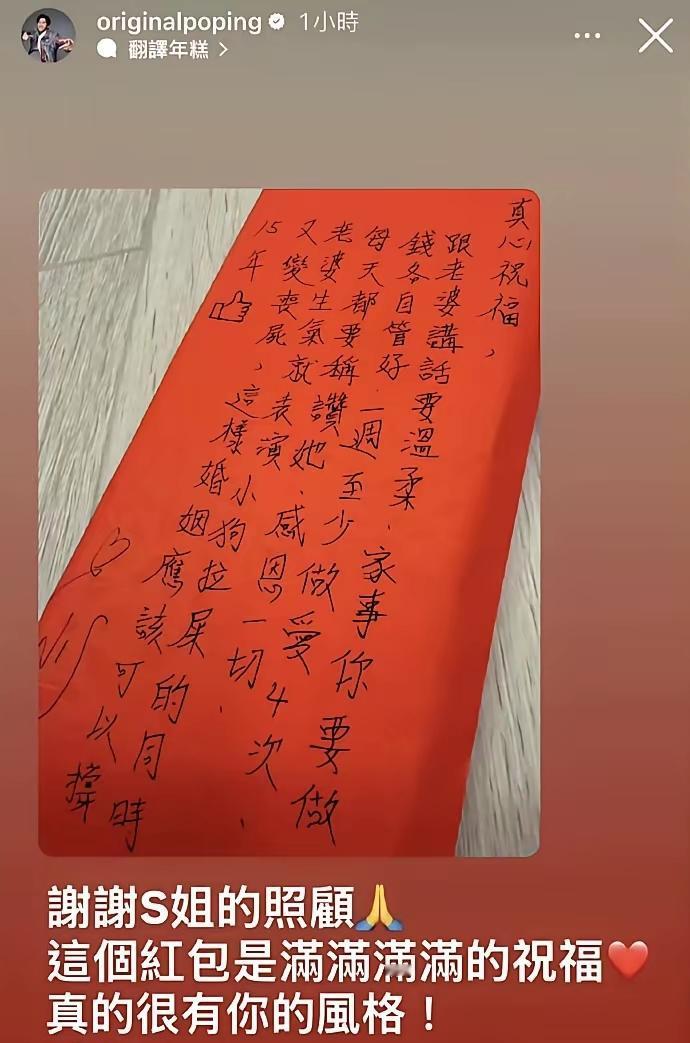 陈汉典结婚,小S没去现场却风头出尽! 陈汉典前天和同为主持人的lulu结婚大礼,但是奇怪的是,作为最熟悉的搭档小S和蔡康永都没出席,反而吴宗宪参加了,还送上了数百万礼金! 原本以为小S没有任何表示,昨天,陈汉典晒出了小S的“红包”。在这个红包里,礼金是多少陈汉典没有说出来,但是小S的一段话却格外引人注目! 文字风格是小S一贯的搞怪,说让陈汉典对老婆好一点,说话要温柔,要做家务,管好自己的财务。最重要的是要求一周要做4次XX。 哈哈,这个要求,对84年出生,今年已经42岁的陈汉典来说,要求肯定有点高,不过这可能是小S故意搞怪。因为媒体报道她老公一年都碰她估计都不超过4次!她却要求别人知道星期XX四次![捂脸][捂脸]