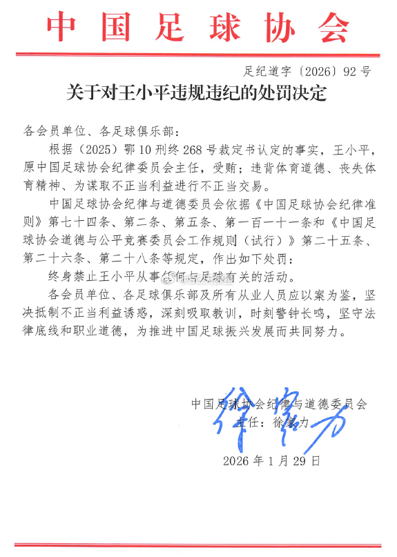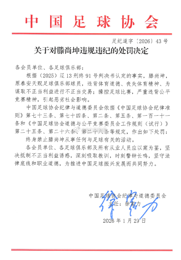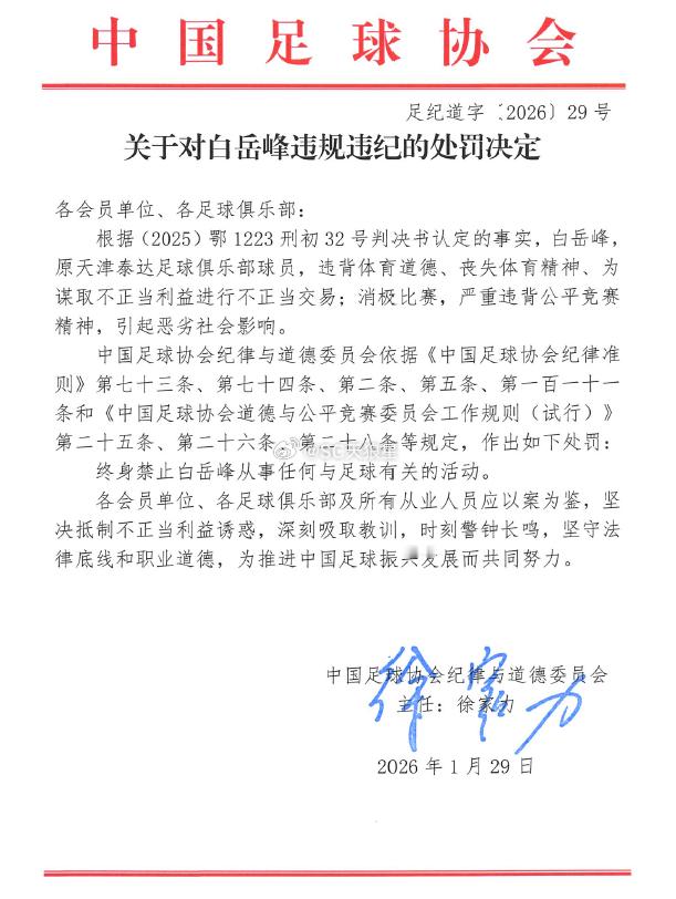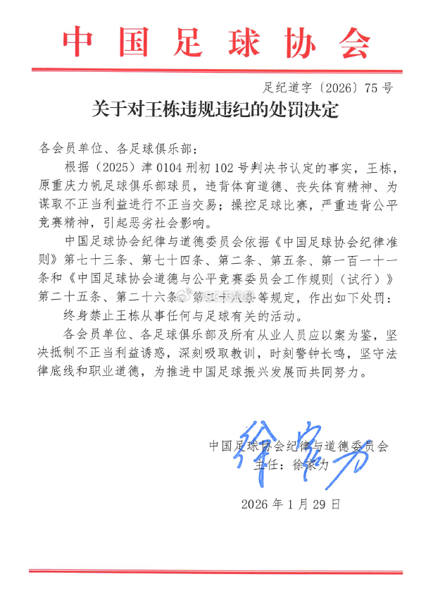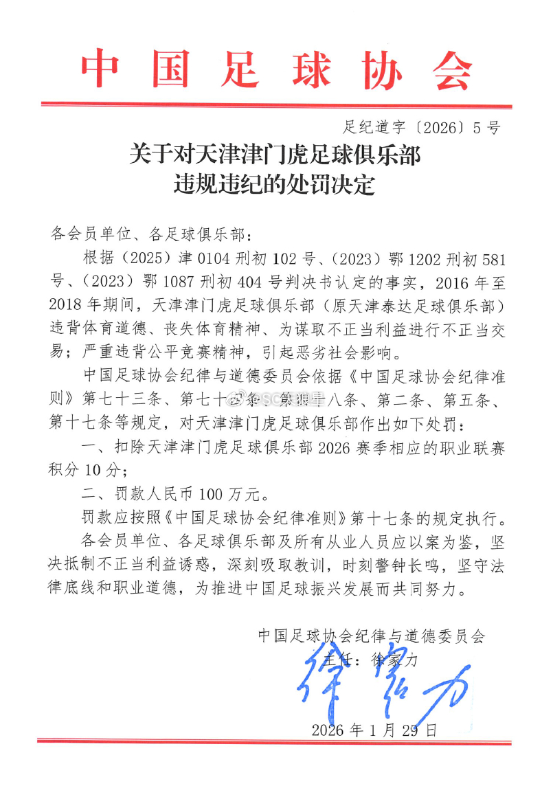 2016年至2018年期间的事情,最终体现在这个罚单里。因为后面有王栋,所以大概率会有2016年最后一轮的问题。除此之外,还有一些津门故人也上榜。另外,最后一张,徐家力给王小平开罚单。。。这事过于黑色幽默。李铁等73人终身禁止从事足球活动 第二批禁足名单出炉 13家足球俱乐部涉假赌黑被罚