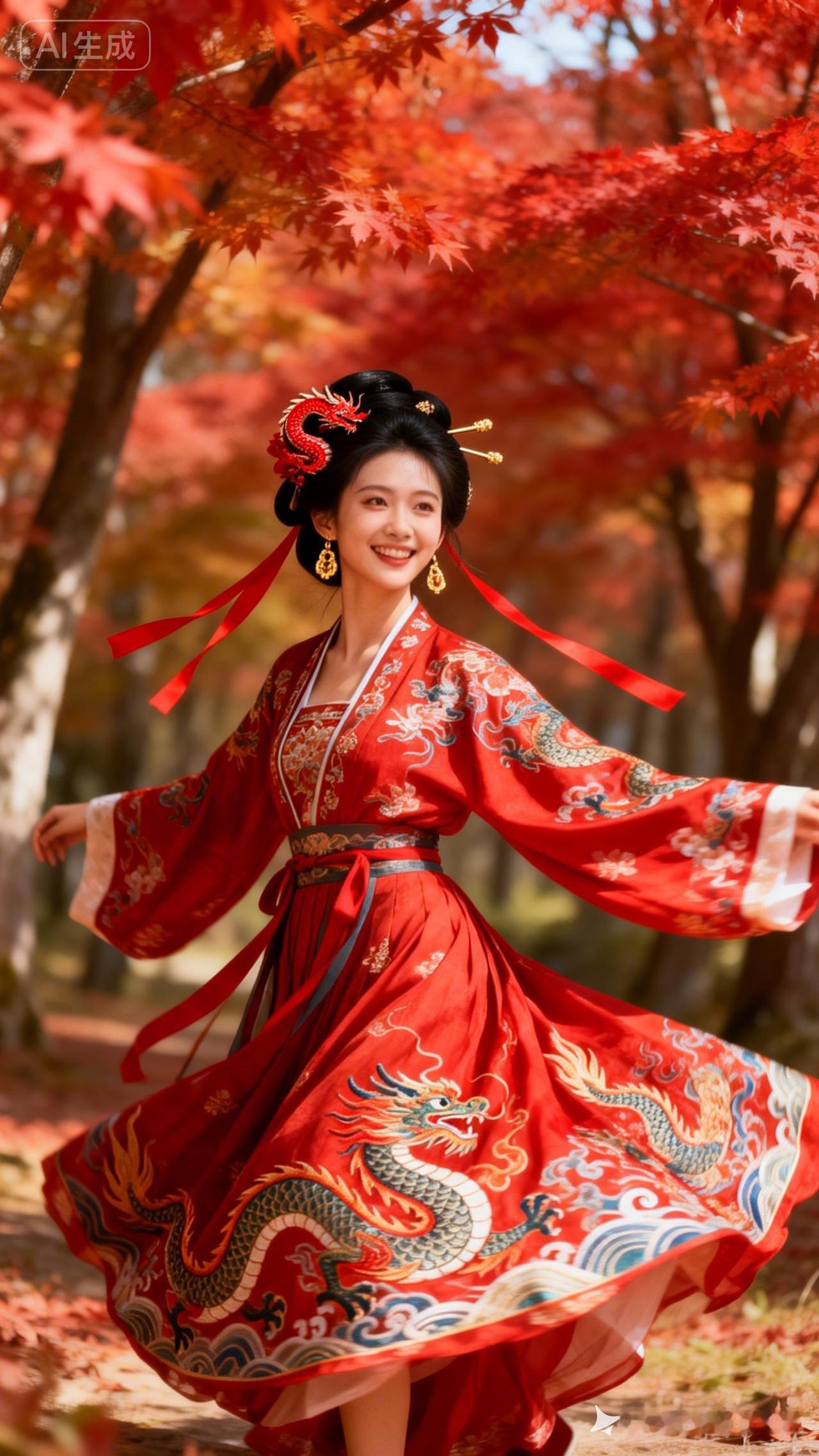 秋日红叶中翩翩起舞,古风华服惊艳亮相!🍂💃🏻