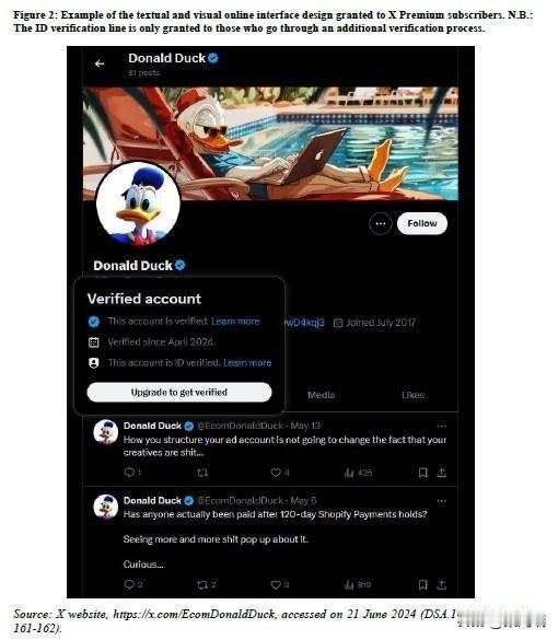 欧盟因X的验证系统而对埃隆·马斯克处以罚款,但原因并非人们会将“唐老鸭”误认为是真人。罚款是因为蓝勾标记的“欺骗性设计”违反了欧盟的《数字服务法》(DSA),使用户难以判断账户的真实性,从而增加诈骗和模仿的风险。 罚款金额: 欧盟对X的总罚款为1.2亿欧元(约合1.4亿美元)。 具体原因: 其中4500万欧元(约合4500万美元)的罚款专门针对“蓝勾”验证徽章的做法。欧盟认为,任何人只需付费即可获得“已验证”状态,而无需公司真正验证其身份,这具有误导性。 其他违规行为: 其余罚款涉及广告透明度不足(3500万欧元)和未能向研究人员提供数据访问权限(4000万欧元)。 图片中的“唐老鸭”账户是一个使用卡通人物图片并带有付费蓝勾的例子,说明了欧盟所指出的问题.