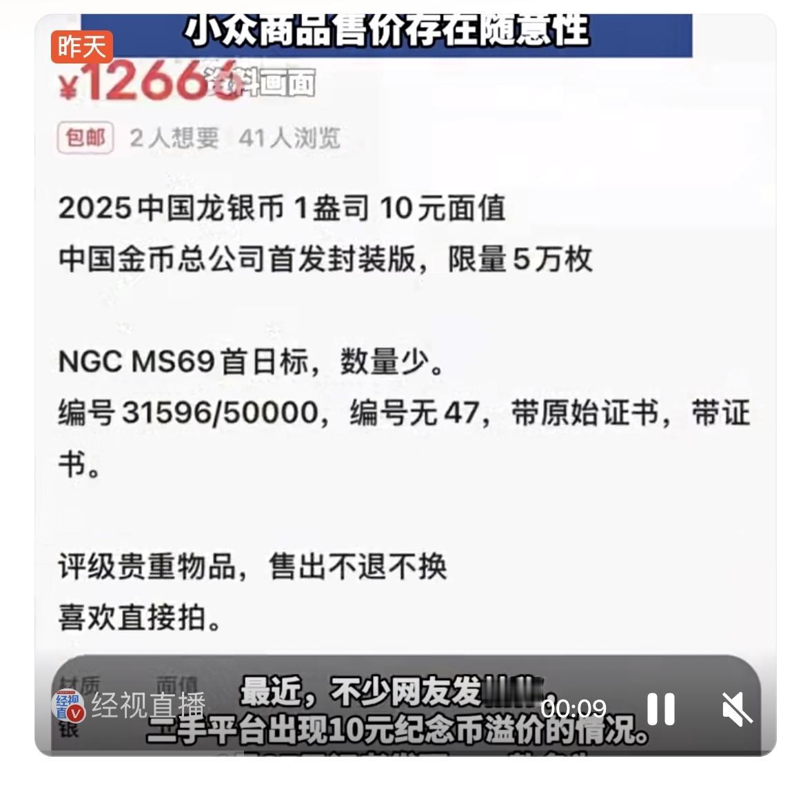1月27日,10元面额2025版龙年银质纪念币在二手平台被炒至1.26万元,有专家指出,该类小众藏品价格已严重偏离实际价值,炒作嫌疑显著。