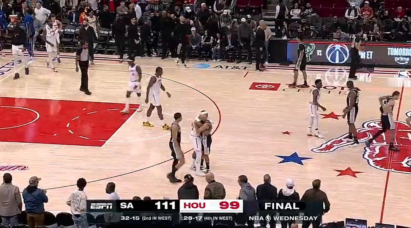 火箭不敌马刺,近期与湖人输赢相同的定律还在继续,胜胜负胜胜负,一个西部第四,一个西部第五,差距为半个胜场。