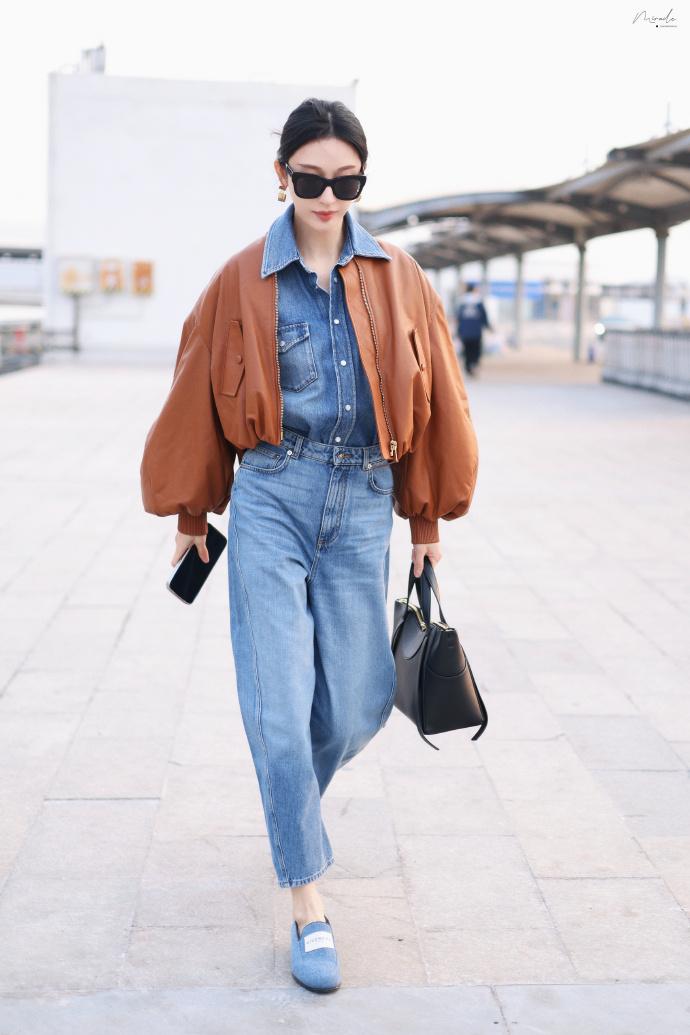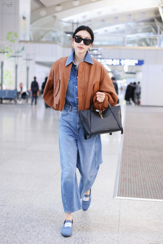 最近张俪现身机场,她这次搭配的很有潮流时尚之美,看上去像是在搞街拍,真的是特别的靓丽。 张俪里面穿蓝色牛仔装,下身搭配蓝色牛仔裤,彰显出了完美的身材比例,气质超好。 她脚踩蓝色牛仔布鞋,走路轻盈又迷人,越变越有吸引力了。 张俪上身穿时尚的短款皮衣,还凸显出了完美的身材比例,看起来像个很有魅力的超模。 她留着漂亮的披肩长发,戴着黑色的墨镜,又酷又拉风,张俪还挎着深色的皮包,增添了高贵感,不得不说张俪也是个很有女神范儿的明星。
