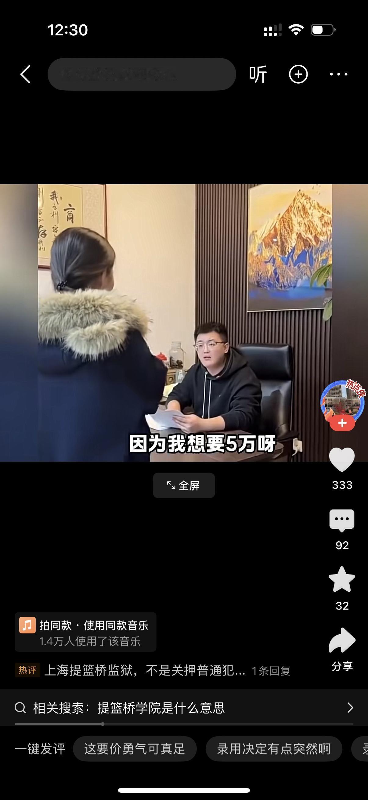 老板冲着面试的女子喊,你信不信我一巴掌过去,让你见不到明天的太阳。你一个中专毕业的,过来面试会计,居然敢要月薪五万?女子说,10万也可以啊。老板说,我是嫌你要的少吗?你这简历上写的工作经历就一年,凭什么要5万。女子回答,因为我想要5万呀。老板说,要100万算了,我直接把公司给你得了。女子说,也行啊。老板问,不是你毕业了11年,工作经历才一年,其他时间干啥去了?女子说,是这样的,我工作了一年,然后就深造去了。老板说,深造是好事啊。为啥不写在这个简历上?去哪个大学深造了?女子说,我没读过大学。老板说,那就是去国外深造呗?女子说,去一个学院深造。老板问,哪个学院?女子答,提篮桥学院。老板眼睛放亮了,说,5万块钱一分不少。那个你什么时候能来上班?女子说,都行。老板一拍桌子,今天就入职。