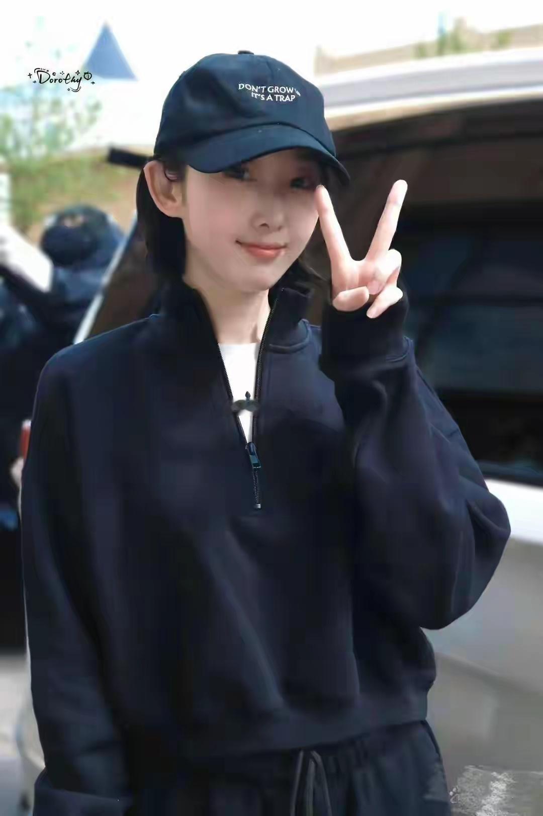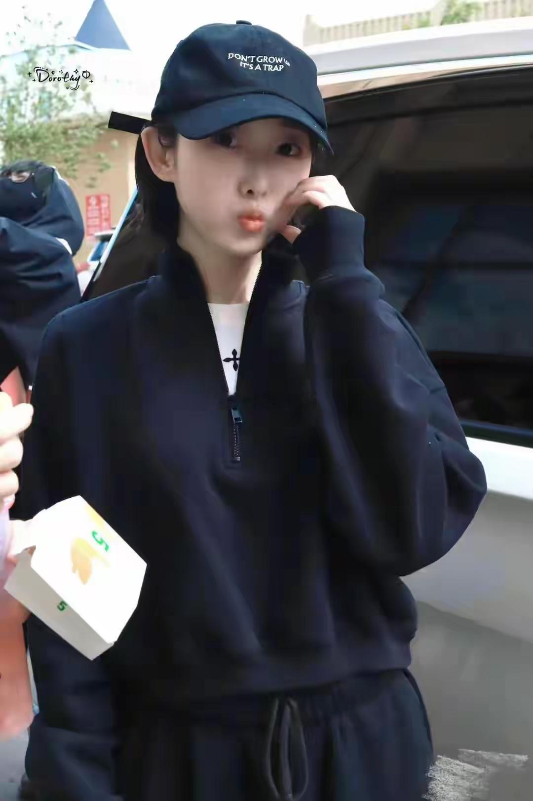 蒋梦婕的私服穿搭向来随性又时髦,此次她选择半拉链卫衣搭配运动裤,堪称休闲简约风的典范,尽显减龄效果。