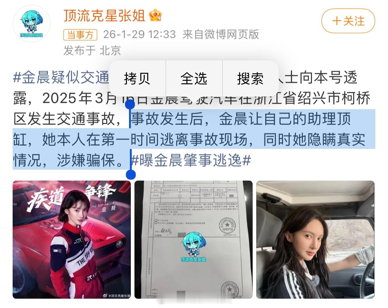 曝金晨肇事逃逸张雨绮之后,金晨也要塌了?