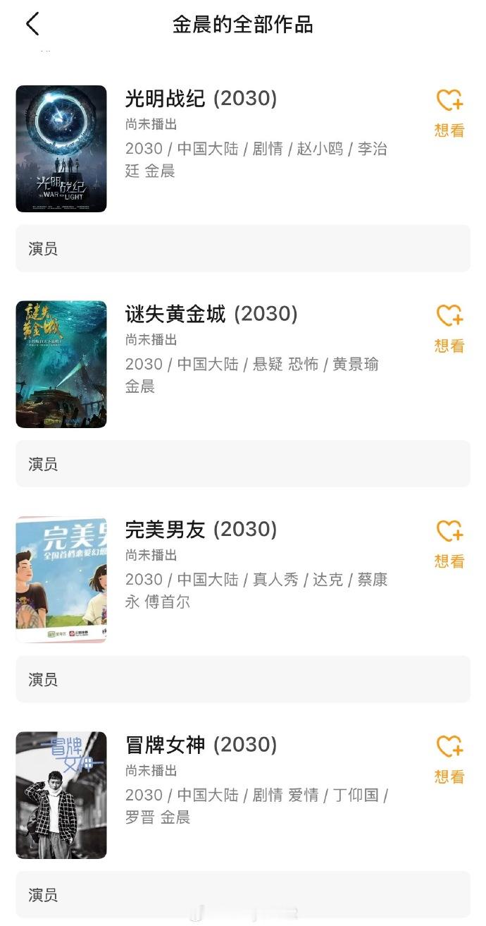 金晨待播作品金晨的待播作品 有网友整理了金晨的待播作品,还挺多的。