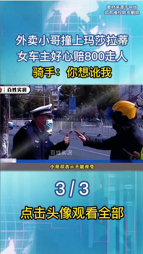 “这下后悔了吧!”2022年,江苏南京,一女子开车到路口时,被外卖员追尾,心疼对方不容易提出赔偿800元就行,没想到对方竟认为被敲诈,报警后,外卖员甚至说警察不懂法,最终根据责任判定,外卖员直接损失12000元。网友:干得漂亮! 这天,女子开着自己的进口豪车在快车道上行驶,没想到停车等红绿灯时,竟被后面的外卖小哥追尾了。她赶紧下车查看,发现保险杠上被蹭掉了一块漆。 想到正常去4S店补漆要3500,考虑到对方送外卖不容易,于是女子便让对方赔偿800就行,自己可以去朋友店里修。不曾想本来的善意竟让外卖小哥突然翻脸,对方觉得女子是在敲诈。无奈之下,女子只能选择报警。 警察调查后,发现是外卖员违规进入快车道,所以判定外卖员全责。可外卖小哥竟说交警不懂法,自己很懂法,坚持说是女子刹车太快才导致自己追尾,女子应该承担全责。 即便警察告诉他,他的想法是错的,外卖员也坚持自己的看法,不想听任何解释,最后还表示,不想耽误时间,公事公办,就去4S店修。可没想到,当他看到车辆的定损单子后,肠子都悔青了,后悔自己没选择800元私了。 女子也没想到,本来的好意竟给自己惹出了麻烦。网友表示,法盲还要坚持自己很懂法,认知局限把善意当敲诈,非要硬刚4S店,真是搬起石头砸自己的脚。也有网友调侃道,外卖大哥非要花12000元证明自己很懂法。 信息来源:《人教人教不会事教人一次就会了