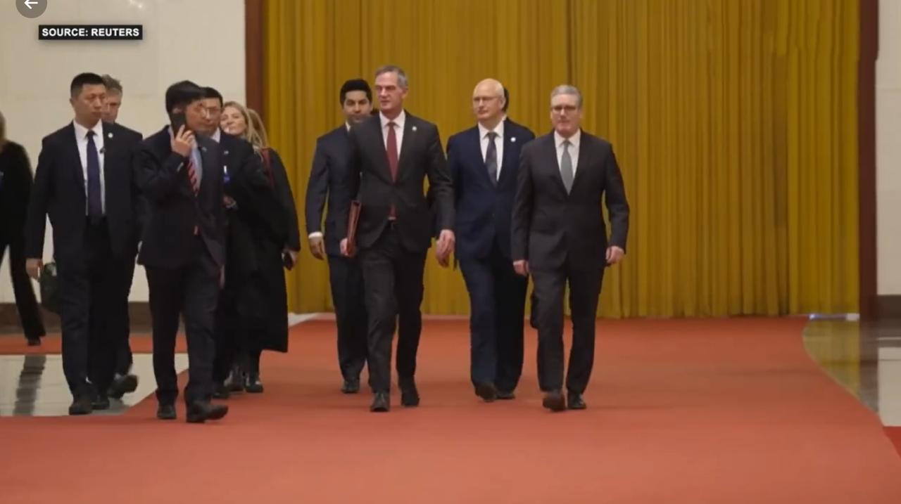 1月29日斯塔默在人民大会堂说话,旁边的人一直盯着,难道是怕英国首相说错话?不光坐在首相两边的人盯着,而且斯塔默手里还拿着稿件,这也太小心翼翼了。 英方一边儿试探一边儿谈生意,根本没有拿出真诚的心来合作,虽说斯塔默之前也说了中美之间不选边站,但也不敢得罪美方。 看来之前泰晤士报的报道:“斯塔默访华全员标配一次性手机、SIM卡与笔记本电脑的“特殊安排”并不是空穴来风,因为从他们一行人走进人民大会堂开始,就能看出英方访华团的谨慎与防备心。 还有斯塔默进入人民大会堂时并没有走C位,还有走路的步伐与同事同步,估计是怕特朗普抓住什么把柄,被拿来说事吧!