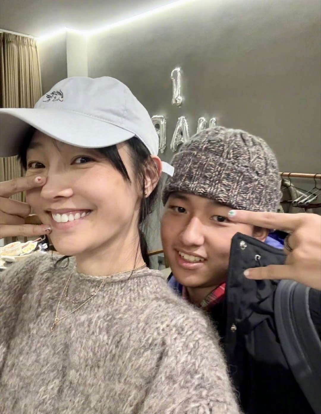 白百何晒与18岁元宝合照幸福的亲子时光宝哥这个帽子和你这件毛衣好搭呀!