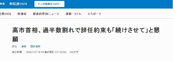 高市早苗又不辞职了? 刚说过“若选情达不到预期,自己将辞职”的高市早苗,又改口了——1月27日,高市早苗在向选民发表讲话时表示,虽然她说过如果执政联盟拿不到多数席位,她会辞职;但如今她的想法变了,即使选举失利,她也希望能继续履行首相职责。 要搞懂她为啥出尔反尔,得先说说这事儿的来龙去脉。高市早苗去年10月才当上日本首相,上台没多久执政根基就不牢。她原本和公明党合伙掌权,后来因为理念不合、党内丑闻等问题,公明党退出了联盟,她只能转头和更保守的维新会合作,才算勉强稳住位置。 可这种合作本来就脆弱,维新会一直拿着削减国会议席等条件给她施压,自民党内部也有不少人不服她,麻生太郎、小泉晋次郎这些老势力还在一旁掣肘,她的首相之位坐得并不安稳。 之前她之所以敢说“不胜选就辞职”,说白了就是一场政治豪赌。1月19日她突然宣布解散众议院,提前举行大选,从解散到投票就留了16天时间,创下日本战后最短选举周期的纪录。 这步棋走得特别急,核心就是想打个时间差——一方面是怕国会开会时,在野党揪着她的问题死磕。 之前她因为涉台错误言论、政治献金丑闻,已经被在野党追着质询,去年12月的国会答辩上,连番追问都让她答不上来,会场嘘声不断,直播还被中断了三次,她实在没底气再接受质询。 另一方面,她想趁着自己还有点支持率,赶紧把民意变现,要是赢了选举,就能在党内站稳脚跟,也能在和维新会的合作里多争点话语权。 那时候喊着“不胜选就辞职”,既是给自己打气,也是给党内和合作方表决心,甚至想靠这种“破釜沉舟”的姿态博取选民同情。 可真到了选战打响的1月27日,她就变了卦。不是她不想赢,而是形势没她预想的那么乐观,真要是把“辞职”的话逼死自己,万一输了就彻底没退路了。 她自己也在演讲时哭着说,花了三十多年才走到首相这个位置,怎么可能甘心轻易放弃。这眼泪说白了就是演给选民看的,既想靠悲情拉票,又想为自己改口找台阶下。 她改口的背后,全是对权力的贪恋和对现实的妥协。现在日本政坛的局势很复杂,在野党已经抱团了,立宪民主党和公明党组建了“中道改革联合”,公明党之前跟着自民党几十年,手里有稳定的选票资源,现在倒向在野党,对自民党是不小的打击。 还有民调数据也不乐观,高市内阁的支持率虽然还有59%,但比两周前降了3个百分点,不支持率却涨了5个百分点,而且她个人的支持率远高于自民党的政党支持率,不少支持她的人选票未必会投给自民党,选情其实很微妙。 更关键的是,她的政策根本经不起推敲,心里没底。为了拉票,她承诺把食品消费税降到零,可这一下每年就少了5万亿日元的税收,只能靠增发国债填补缺口,最后只会让通胀更严重,老百姓的日子更不好过。 外交上她更是一塌糊涂,疯狂炒作涉台话题、搞对华强硬那一套,结果中方收紧了相关矿物质的出口管制,直接冲击日本高端制造业的供应链。想拉拢朝鲜和俄罗斯缓解压力,也没人搭理她,1月27日朝鲜还直接发射了两枚弹道导弹,摆明了不把她放在眼里。 她心里清楚,要是真兑现承诺,一旦选举失利,不仅首相之位保不住,还会被党内的反对势力趁机发难,之前几十年的政治积累就全白费了。 所以干脆改口,先把“继续履职”的话放出来,就算真输了,也能找各种理由赖着不走,或者和党内、合作方谈条件,总比直接辞职出局强。这种出尔反尔的做法,其实就是政客的算计,怎么对自己有利就怎么说,根本不管什么政治诚信。 现在的高市早苗,已经把首相的权力用到了极致,为了保住位置不择手段。解散众议院打断在野党质询、搞闪电战选举、靠眼泪博同情、出尔反尔改承诺,每一步都是为了攥紧权力。 可她越是这样,越能暴露自己的虚弱。日本民众也不是傻子,已经有不少人在她拉票时当场示威抗议,反对她的强硬政策和出尔反尔的作风。 这场选举对她来说就是生死战,不管最后结果怎么样,她这种说话不算数的做法,已经丢了政客最基本的信誉。 要是赢了,日本的右倾化只会更严重,继续搞对华强硬、扩军备战,最后只会坑了日本自己;要是输了,就算她改口不想辞职,党内反她的势力也会趁机逼宫,她大概率还是保不住位置,日本又会回到“一年一换首相”的动荡局面。 说到底,高市早苗的反复横跳,不过是权力面前的私心作祟,最终只会被自己的算计反噬。