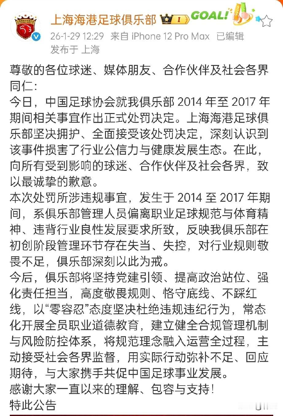 对于中国足球而言,2026年1月29日又是一个非常糟糕的日子! 但即便如此,2026年1月29日的中国足坛依旧不缺少亮点。这其中,干干净净的北京国安所发布的“人在做!天在看!头顶三尺有神明!”绝对最亮甚至最让人振奋! 不管深处多么肮脏的大环境,总有人选择拒绝同流合污,这就是中国足球还有希望的最有力证据!从今天这个糟糕日子开始,真心祝福北京国安永远是第一,而不再仅是“永远争第一!” 谢谢北京国安!