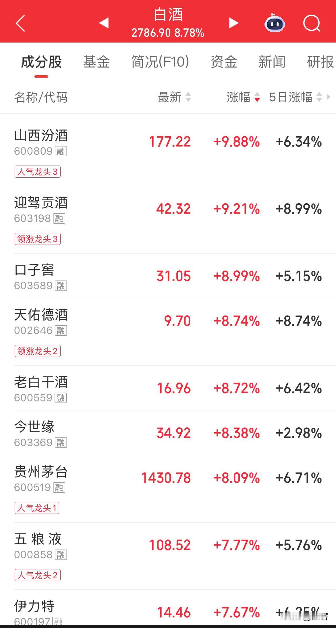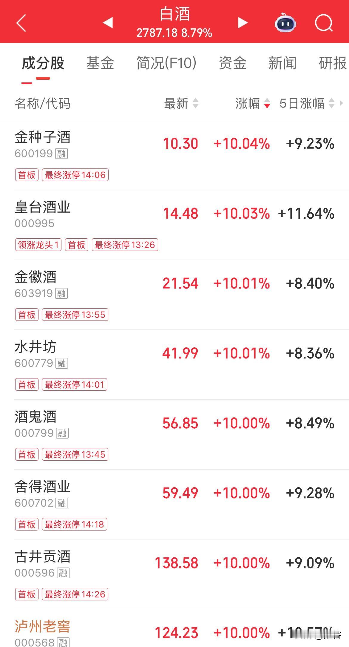 白酒板块上演“旱地拔葱”。 昨天涨贵金属,今天涨白酒……主力每天拉一个老登板块,天天不重样,今日轮到白酒,那么明天是不是该到医药板块了? 今日浓眉大眼的泸州老窖、水井坊、舍得、汾酒涨停,茅台涨8%,这真是活久见。 其实主力就是要告诉广大散户、游资和外资,在A股市场究竟谁说了算:我想拉哪个快板就拉哪个,这是市场由我做主。 可是这样一来,以后还会有资金敢来吗?