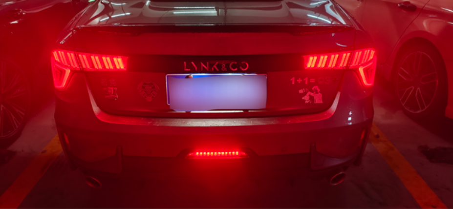 给小白们普及一下子,领克03最下面的小灯叫做雾灯,只有后雾灯,前雾灯取消了,因为穿透力强,为了雨天或者大雾天容易被后车发现而用的,可以通过转向灯那个拨杆上的雾灯按钮开启,如果是正常的夜晚或者白天开启,会引起后车的不适,不要以为好看或者什么领航灯之类的随便开启。
