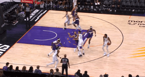 逐帧拆解:波特爆砍赛季新高36分,战术&进攻细节解析P1回合一:抓早攻发动无球传切配合,波特见招拆招空切长驱直入赵四边路上提接球,曼恩和波特随即发动无球传切配合。波特借曼恩“Flare Screen”空手移动后佯装接球,见罗奥封锁传球路线同时上提不给投篮空间,立即在其上提后向篮下切入摆脱。随后接赵四击地传球直杀篮下如入无人之境(赵四高位发牌将马威调离禁区、弱侧底角协防人是后卫阿伦)双手暴扣得手。P2回合二:假动作晃过狄龙后反跑空切长驱直入,强硬隔人终结赵四上提至肘区拿球发牌,波特佯装上前衔接手递手骗过狄龙后迅速反跑空切摆脱,中路接赵四击地长驱直入,迎着回退篮下护框的马威强硬起身隔人终结打进。P3回合三:无球配合点名阿伦+手递手开发进攻,行进间内侧脚急停撤步强拔三分波特和德明无球配合换走狄龙、点到阿伦错位,随即上提衔接和赵四的手递手:行进间炸球的同时使用内侧脚急停,随即衔接后撤步强拔三分手起刀落。P4回合四:不同的战术环节,相同的战术意图&理念虽然和上图回合执行的战术不同,但战术意图与理念相同——先通过无球掩护帮波特点名错位(降低开发难度、增强进攻针对性),随后衔接手递手配合开发出手。这个回合波特底角无球启动执行“Zoom Action”,先借曼恩无球掩护换走狄龙、点名阿伦,随即上提手递手接球,炸球回拉借再借赵四掩护彻底挡死阿伦,迎着马威扑防强拔三分手起刀落。P5回合五:外线接球化解双人夹击,横撤步不讲理强拔手起刀落曼恩底角无球启动执行“Zoom Action”,波特设置掩护后外拆至三分线外拉开。随后接曼恩突分,瞬间吸引狄龙、古德温两名防守悍将同时上前扑防、夹击。波特先是侧身护球、佯装就近出球给德明,随后在古德温归位的瞬间使用炸球横撤步强行开发出手,不讲理三分手起刀落。P6回合六:“Stagger”起手点名错位+开发出手,战术型三分手起刀落扎威上提后三分线外拿球发牌,随后波特无球借助曼恩、赵四设置的“Stagger”点名到阿伦错位的同时上提兜至弧顶,接球后立即拔起出手三分,抬手就进。NBA