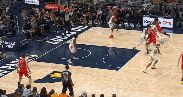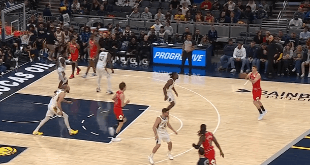 布泽利斯观察:单节爆发砍下13分,三分在线&投突结合高效20+8P1布泽利斯弱侧接球后立即中转给吉迪,随即为其设置假挡快拆发动第二波进攻。进攻时间所剩不多吉迪三分强解不中,此时下顺到篮下的布泽利斯顺势将对位人卡在身后,随即高高跃起单手补扣得手。P2怀特挡拆吸引内史密斯激进回收篮下协防,弱侧底角布泽利斯高举右手示意自己身处空位,接怀特传球迅速横撤步调整——与扑防的内史密斯进一步拉开距离后三分稳稳命中。P3武器禁区深处背身接球吸引三人围堵,随即找到拖车进攻至弧顶获得大空位机会的布泽利斯,布泽利斯接球三分手起刀落。P4布泽利斯油漆区无球起手执行“Zoom Action”,手递手接球后行进至弧顶顺势启动突破,过掉换防过来的胡夫直杀篮下挑篮得手。P5布泽利斯传球给上线赫尔特后立即为其设置“幽灵掩护”,外弹至三分线外获得大空位出手机会,接赫尔特回传三分手起刀落打击胡夫。P6赫尔特接布泽利斯分球虚晃点飞西卡后立即启动突破,见步行者执行“剥离换防”直接抓换防间隙回传给移动至三分线外拉开的布泽利斯。布泽利斯接球立即启动突破摆脱西卡,直杀篮下欧洲步+慢三步+虚晃点飞西卡后抛投稳稳放进。P7退防过程中见右路跟进的弗菲接内姆传球直杀篮下,兼顾外线一防二的布泽利斯果断回收篮下,起跳盖帽镇守禁区。P8弱侧底角接球垫步调整后三分手起刀落。NBA
