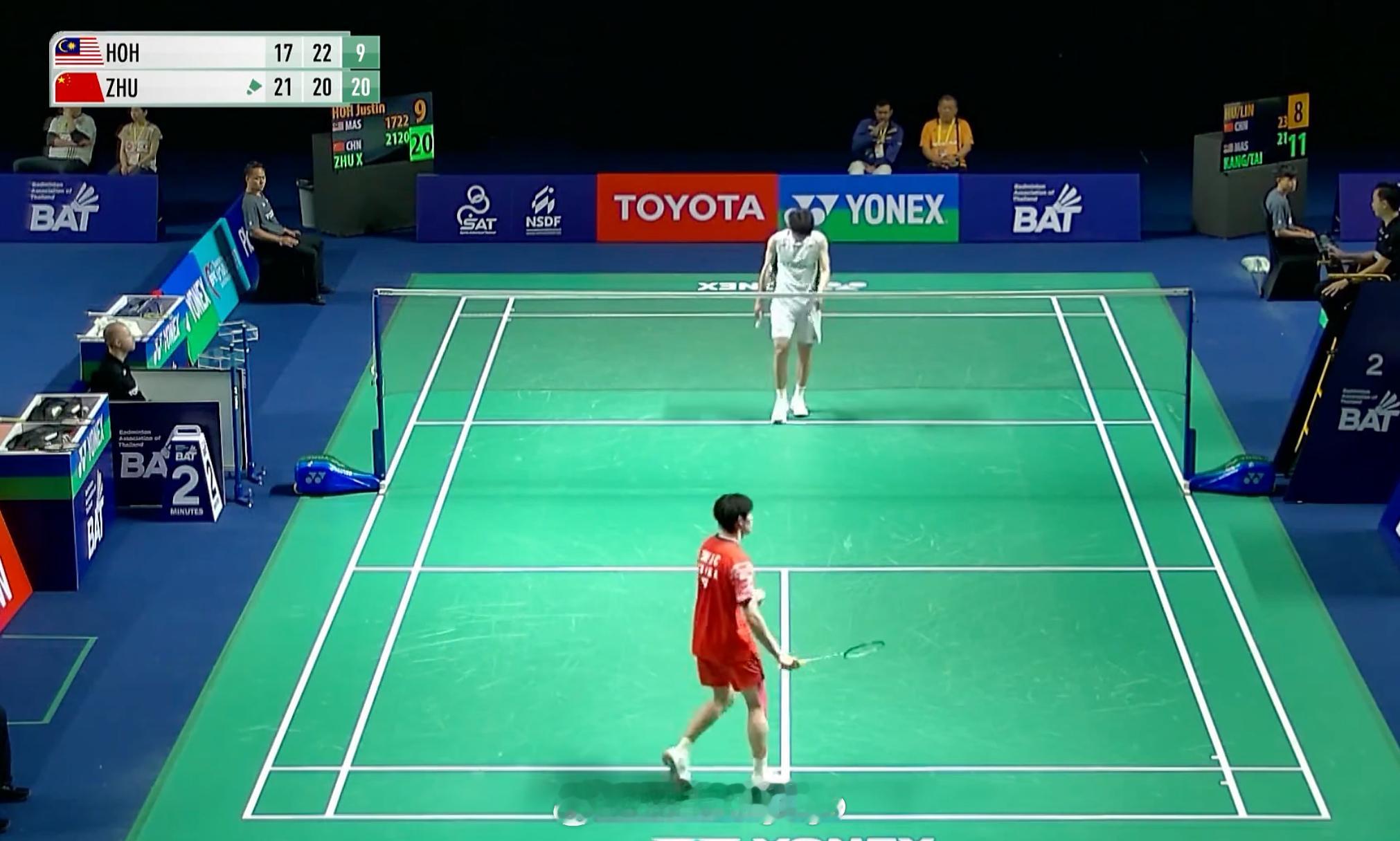 2026年泰国羽毛球大师赛 男单1/8决赛🇨🇳朱轩辰 21-17 20-22 21-9 贺首维🇲🇾继去年中国澳门公开赛,朱轩辰生涯第三次闯入超级300级别八强;贺首维在本年度的三站比赛连续被不同的三位国羽男单淘汰