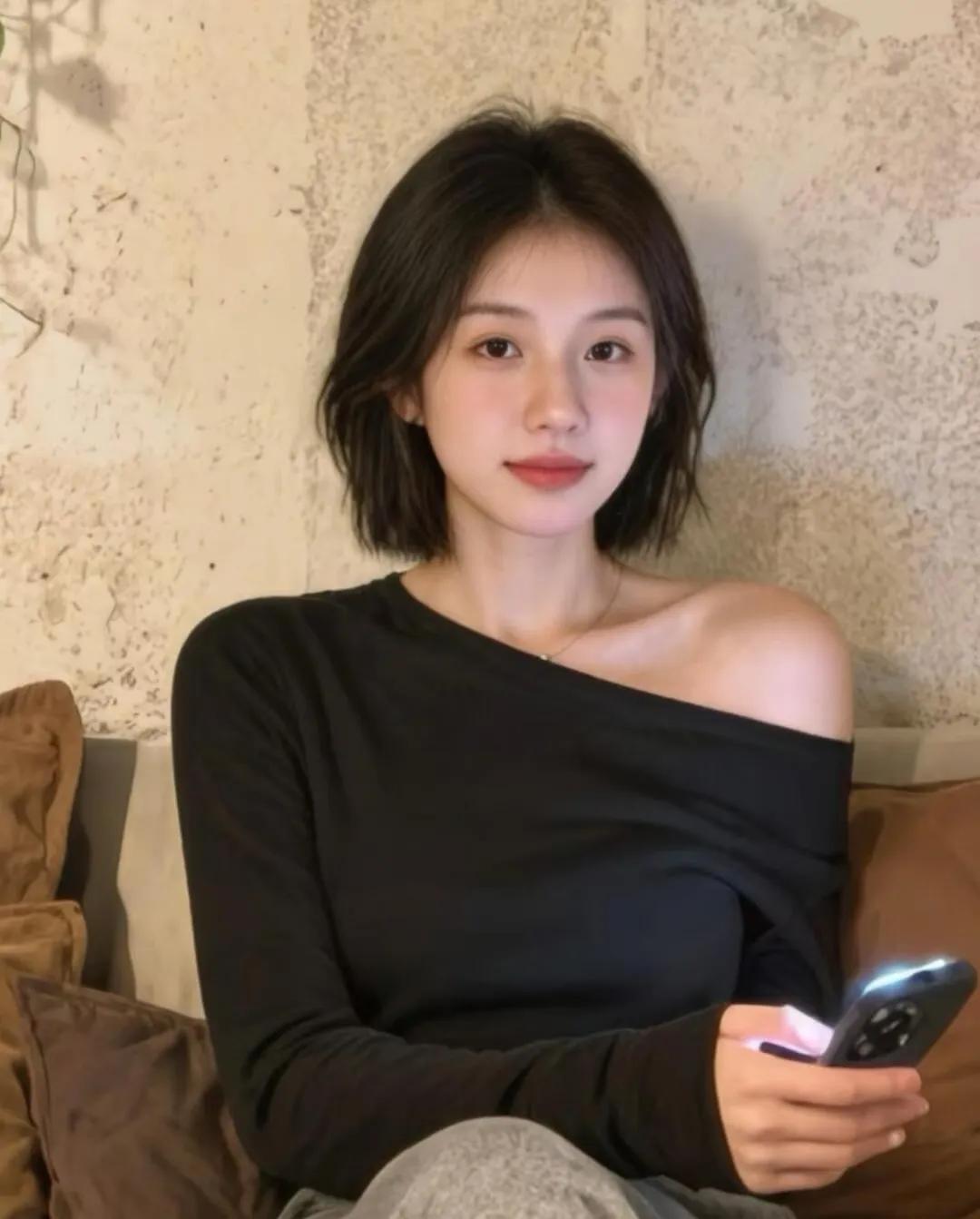 温柔短发,甜美笑容,元气满满的一天!🌞💕