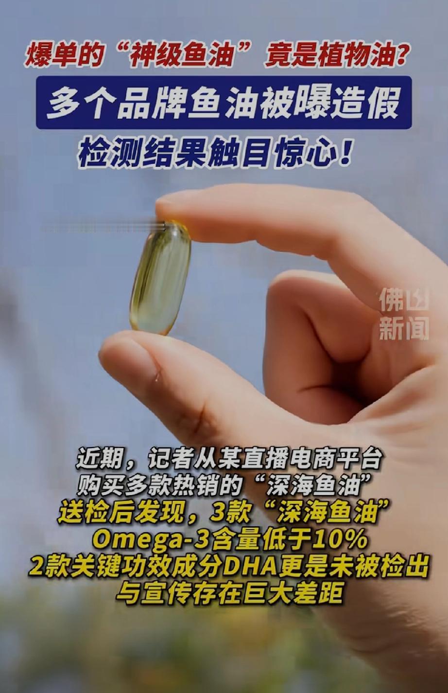 神级鱼油竟然是植物油,而且还不是花生油也不是芝麻油,更不是菜籽油,而是最廉价的大豆油。 鱼油是大豆油做的,驴肉是马肉做的,牛羊肉是鸭子肉做的,藕粉是木薯粉做的,红薯粉也是木薯粉做的。 现如今这个社会假货横行,谁该为这样的事情负责任呢?是谁在纵容他们呢?