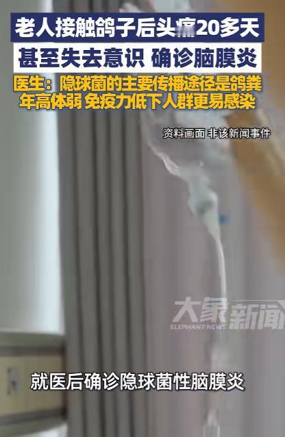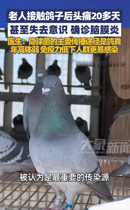 “万万没想到!”浙江,一65岁老人频繁与邻居家鸽子接触,结果头痛20多天,失去意识后被家人送医,最后被确诊得了脑膜炎,治疗周期最少需要半年!网友:涨知识了! 谁能想到,平日里闲来无事逗逗邻居家的鸽子,这样一件看似再平常不过的小事,竟会让一位老人遭遇一场危及生命的大病。 浙江这位 65 岁的老人平日里身体还算硬朗,没有什么严重的基础病,唯一的爱好就是在小区里散散步,和邻里聊聊天。 邻居家在阳台养了十几只鸽子,老人觉得鸽子活泼可爱,每次路过都会停下脚步喂点粮食,偶尔还会帮邻居收拾一下鸽笼周边的杂物,一来二去,和这些鸽子接触的频率变得极高,手上身上沾到鸽粪也是常有的事。 老人和家人都没把这种接触当回事,只觉得是生活里的小插曲,过一段时间,老人开始出现头痛的症状,一开始只是偶尔的阵发性头痛,疼一阵就过去了。 老人想着自己年纪大了,可能是没休息好或者血压有点波动,就自行吃了点止痛的药,家人也以为只是普通的身体不适,没有及时带老人去医院检查。 可谁也没想到,这看似轻微的头痛不仅没有缓解,反而一天比一天严重,从偶尔的阵痛变成了持续性的胀痛。 哪怕躺着休息也丝毫没有改善,期间老人还伴随有低热的情况,体温一直维持在 38℃左右,家人又按普通感冒给老人吃了感冒药,可症状依旧没有任何好转。 就这样拖了二十多天,老人的精神状态越来越差,走路都有些晃悠,某天在家中突然眼前一黑,直接失去了意识。 家人见状吓得赶紧拨打了 120,将老人紧急送往了当地医院的急诊科,一路上所有人都满心焦急,不知道老人到底是出了什么问题。 送到医院后,医生立刻对老人进行了全面的检查,发现老人除了意识模糊,还伴有颈部僵硬的典型症状,结合老人持续头痛二十多天的病史,医生第一时间安排了腰椎穿刺检查,这也是诊断脑膜炎的关键检查手段。 脑脊液的检测结果出来后,答案也终于水落石出,医生在老人的脑脊液中发现了新型隐球菌,老人被确诊为新型隐球菌脑膜炎。 而当医生询问老人的日常接触史时,家人提及的老人频繁接触邻居家鸽子的细节,让医生确定了感染的源头。 接诊医生对此做出了详细的解释,新型隐球菌脑膜炎的主要致病菌就是新型隐球菌,而这种真菌最主要的传播途径就是鸽粪,鸽子可以说是这种真菌最重要的传染源。 新型隐球菌并不适合在鸽子体内生存,因为鸽子的体温相对较高,可鸽子的粪便却成了这种真菌的 “理想繁殖基地”,鸽粪中含有的氮、磷、钾等营养成分,能让新型隐球菌大量繁殖。 哪怕是干燥后的鸽粪里,也藏着数量惊人的隐球菌活菌,这些活菌会形成微小的孢子,随着空气的流动飘散在周围,一旦被人吸入,就有可能进入人体引发感染。 更可怕的是,新型隐球菌外面有一层厚厚的多糖荚膜,这层 “保护罩” 能让它轻松躲过人体免疫细胞的攻击,在体内肆意繁殖。 这些真菌先进入老人的肺部,随后又通过血液循环扩散到中枢神经系统,最终侵犯脑膜,引发了脑膜炎。 医生还提到,新型隐球菌感染属于机会性感染,并非接触鸽粪就一定会患病,是否会被感染,关键就在于接触病原体的数量和自身的免疫力。 像老人这样频繁接触鸽粪,又恰逢身体免疫力处于较低水平,感染的概率就会大幅增加,而老年人、糖尿病患者、长期服用免疫抑制剂的人群,都是这类感染的高发群体。 不只是新型隐球菌脑膜炎,鸽子身上还可能携带其他病原体,这些病原体也可能通过气溶胶、直接接触等方式传播,比如鹦鹉热衣原体,同样会对免疫力低下的人群造成威胁。 而想要避免这类感染,其实也有简单的防护方法,日常接触鸽子或清理鸽粪时,戴上口罩和手套,避免直接接触鸽粪和被鸽粪污染的物品。 鸽笼也应放置在通风良好的地方,减少真菌孢子的聚集,一旦出现持续头痛、低热、呕吐等不明原因的症状,要及时就医,不要自行用药延误病情。 生活中很多看似不起眼的小细节,都可能和健康息息相关,而了解这些相关的健康知识,也能让我们更好地保护自己和家人的身体健康。 对于这件事,您有什么想说的吗?欢迎评论区留言讨论。 信源:大象新闻2026-01-27——《1月22日(报道),老人接触鸽子后头痛20多天,严重到失去意识,到杭州查了3天确诊是隐球菌感染…》