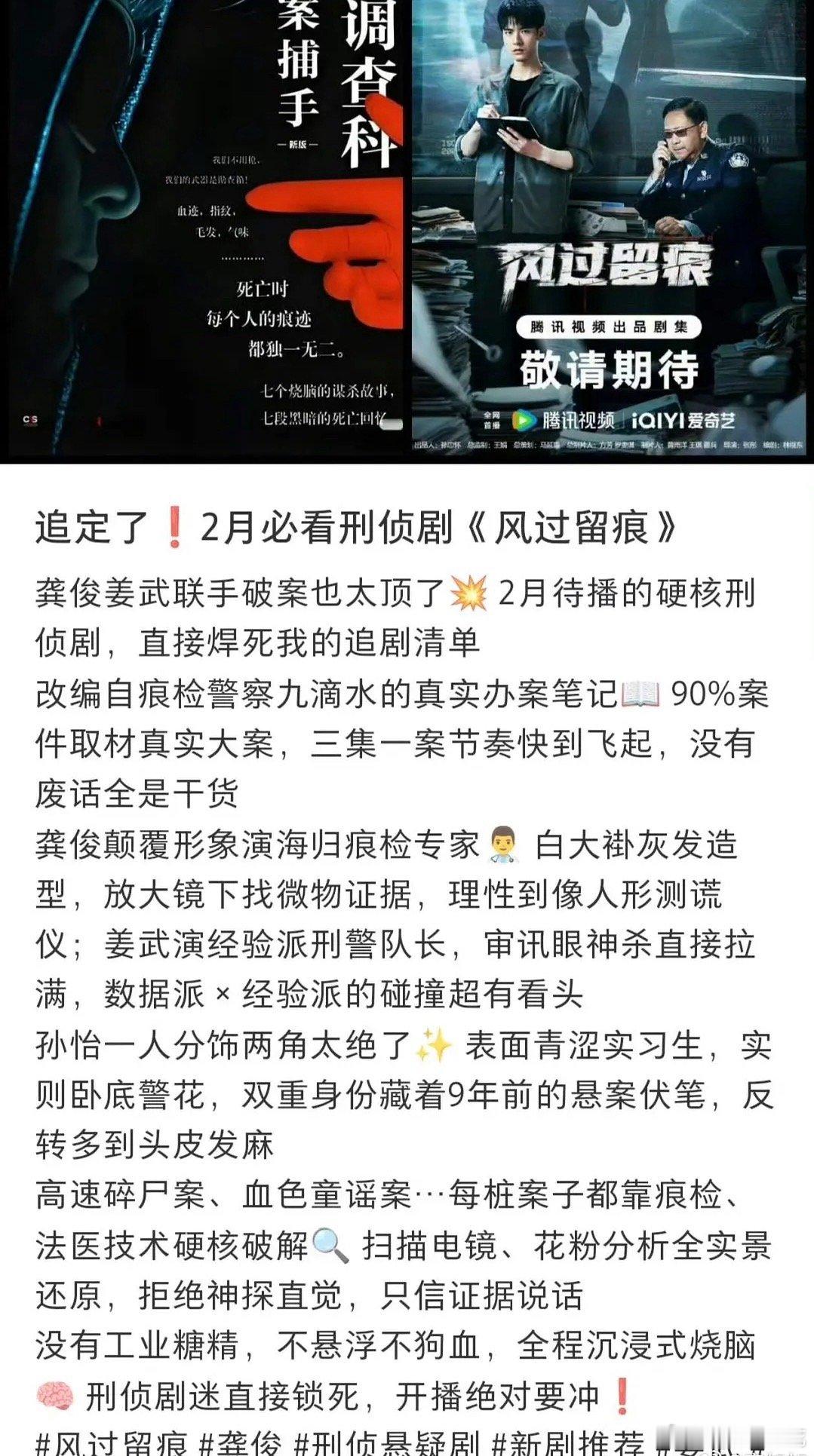 终于要有会动的物料了吗龚俊风过留痕叶谦定档0203!还是国内首部痕迹检验刑侦剧听