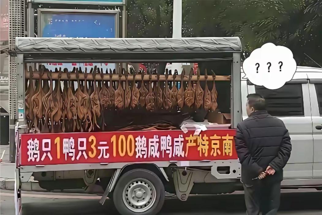 老人看到卖鹅鸭老板这标语都懵了,看了好久,最后想去问,怕闹笑话,就默默走了,你能看得懂吗?