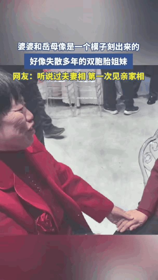 “解释不清了!”山东,男子去参加婚礼,当新人父母登场时,台下一片惊呼,他抬头一看直接愣住了,新郎妈和新娘妈像失散多年的双胞胎姐妹,长得太像了。 这事就发生在山东滨州的一场乡村婚礼上,发帖的男子本来正低头刷手机,听见旁边人突然咋呼起来,才赶紧抬头看。 只见两位妈妈穿着同款喜庆红衣服,留着一样的齐耳短发,手挽手跟着音乐往主宾席走,步子都迈得差不多大。 等两人面对面坐下,男子彻底看呆了,眉眼、鼻梁、连笑起来眼角弯的弧度都像一个模子刻出来的,甚至说话时微微侧头的小动作都一模一样。 他还以为是新娘家来了双胞胎姨母,偷偷问旁边的宾客,结果人家说这俩一个是婆婆一个是丈母娘,当场把他惊得合不拢嘴。 现场宾客也都炸了锅,纷纷掏出手机拍,连见多识广的司仪登台时都调侃,差点认错人喊错妈。 后来听司仪说,两位妈妈年龄相仿,家住相距四五十公里的两个小镇,之前压根不认识,儿女定亲后第一次见面,两家人就被这相似度逗得直笑。 当天两人坐在一起聊育儿经、唠家常,没一会儿就熟得跟亲姐妹似的,说话的语气、爱笑的模样,越看越像。 其实缘分这东西真挺玄乎,不是一家人不进一家门这话真没说错。 但我觉得最妙的不是长得像这件事本身,而是这份相似直接打破了两家人初次相处的拘谨,让婆媳、亲家之间少了很多尴尬。 比起刻意维系的客气,这种天生的“熟悉感”才是最好的破冰剂,往后小两口过日子,两边老人处得亲,这不就是最实在的福气嘛。