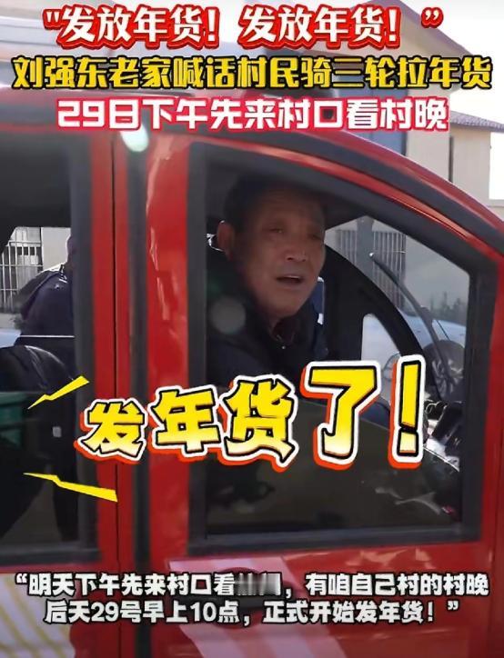 刘强东,让人泪目了! 1月27日晚上,最近很低调的刘强东,突然冲上了热搜,不是因为奶茶妹妹,而是因为宿迁光明村的乡亲们要忙坏了! “到点了!刘强东又回村发年货了!”1月27日一大早,江苏宿迁光明村的大喇叭就响了起来。村民们一听这熟悉的声音,立马放下手里的活儿,有的骑上三轮车,有的推着小推车,直奔村委会广场。 因为大家都知道,“大强子”又惦记着老家了。 其实这已经不是刘强东第一次回来送年货,但今年格外热闹。8辆9米长的大货车开进村口,卸下上万件东西:能听懂宿迁话的AI手机、血糖仪、蛋白粉、电热毯、筋膜枪,还有给孩子们准备的护眼台灯。 更暖心的是,60岁以上的老人每人1万元现金红包照发,当年教过他的小学老师,每人10万元! 村里人都说,这哪是发年货,简直是白捡钱啊! 刘强东对家乡的好,有目共睹!30多年前,他考上人大却凑不齐路费,是全村乡亲你五毛、我一块、硬生生凑出了500块路费,还煮了76个茶叶蛋让他路上吃。 从那以后,刘强东就把这份恩情刻在心里。2015年第一次给老人发现金红包、2018年送家电礼包、2024年发羽绒服,今年更是把年货升级成“科技+健康”组合。 除了捐钱,刘强东还给村里修了“光明大道”,建了幼儿园、养老院,甚至把京东客服中心搬到宿迁,让本地人在家门口就能上班。 正因为如此,村民对他感情很深。有人留出一间房专门放年货,有人把去年领的洋河酒摆在柜子上,舍不得喝。他们不说“感恩”,但一句“大强子还是咱村的娃”,胜过千言万语。 可就在乡亲们欢欢喜喜领年货的时候,网上却出现了不同的声音。有人说送就送,这样大肆宣传未免也太高调了吧,很难不让人怀疑有作秀的成分。 也有理性的网友担心,心系家乡是好事,可万一哪年不发了,村民们难道不会失望吗? 对于这些声音,刘强东并没有急于解释,而是用实际行动打消了公众的质疑。近几年,刘强东已经悄悄调整方式,不再只发现金,而是引入AI教室、健康设备、物流站点,试图让帮扶可持续。 他明白,光靠“输血”救不了乡村,得想办法帮家乡“造血”才是长久之计。如今,光明村近九成年轻人在京东工作,快递次日达,农产品也能卖全国。这才是最实在的改变。 1月27日晚,热闹了一天的光明村依旧灯火通明。舞龙队和机器人在广场同台表演,孩子们围着AI点读笔叽叽喳喳。 刘强东站在人群后头默默地看着,没发表什么讲话,也没刻意露脸。或许在他心里,回报乡亲从来不是任务,而是一份心安。 因为他从未忘记,许多年前,那个背着破书包走出泥巴路的少年,正是踩着乡亲们用鸡蛋和零钱铺成的桥,才走到了今天的星辰大海。 对此你有什么看法?欢迎在评论区留言讨论。 京东 刘强东发年货 信息来源: 九派新闻2026-1-27|刘强东为老家准备的超万件年货已发车,村里通知村民准备推车来领 文|墨海 编辑|史叔