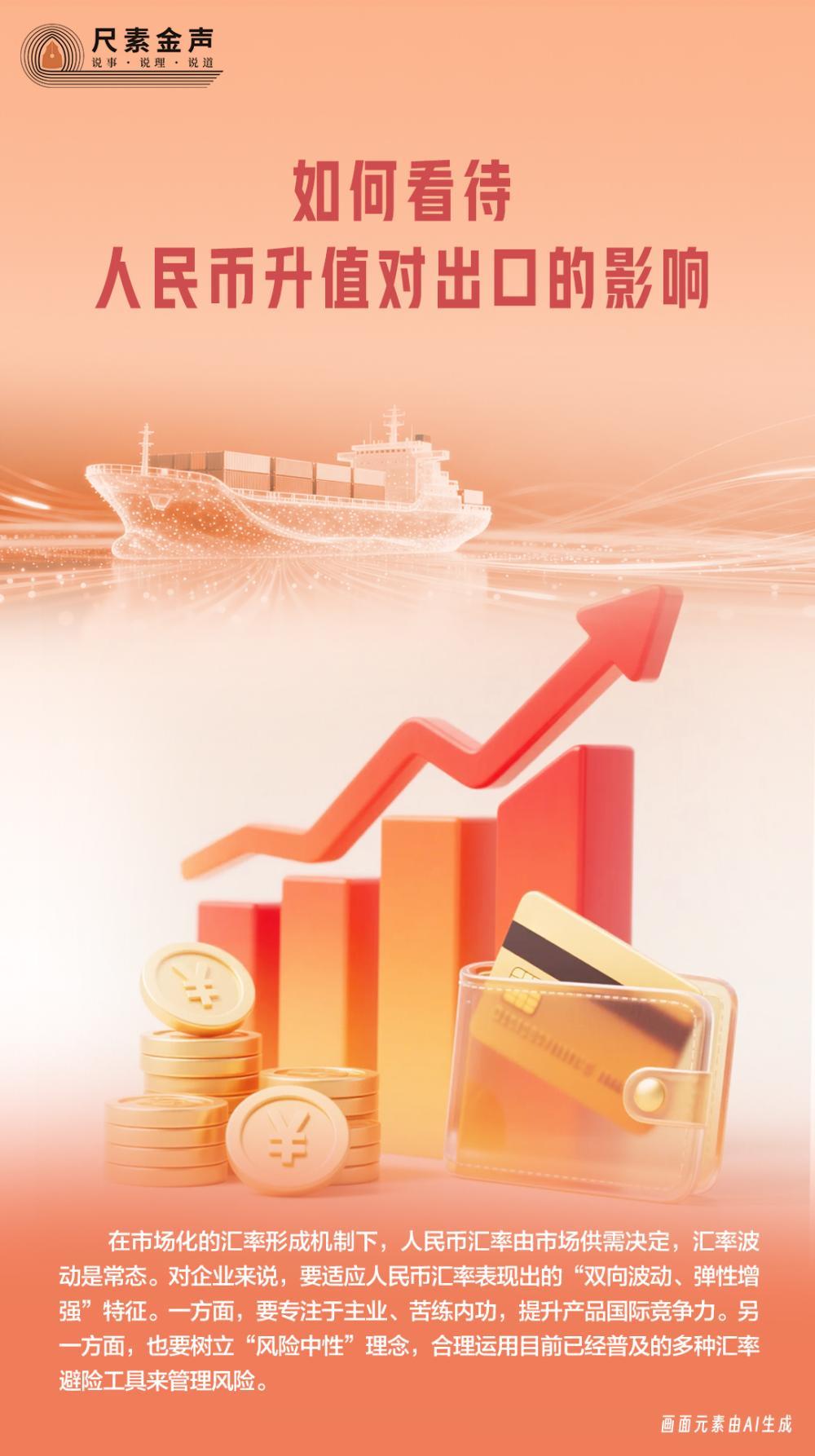 按照传统理论,人民币汇率升值会给我国出口企业带来不利影响,主要表现在产品价格竞争力下降、出口收入换回的人民币减少、利润空间压缩等方面。不过,在我国对外贸易机构更趋多元、出口产品结构不断优化以及部分高端产品拥有比较优势的背景下,人民币汇率升值对出口的影响正在逐渐减弱。在外部压力的倒逼下,我国制造业结构优化升级,即便部分出口商品因为汇率升值造成价格优势下降,海外客户在短时间内也难以找到其他更优的供应商,还是愿意采购中国产品。当前,“技术壁垒”正逐渐取代“价格优势”成为我国出口产品的主要竞争力。同时,近年来企业适应汇率双向波动的能力也不断增强,外汇套期保值的比率上升到30%左右,企业提前锁定汇兑成本,降低汇率波动对生产经营的影响。此前在国新办发布会上,中国人民银行副行长邹澜表示,“中国是负责任的大国,没有必要、也无意通过汇率贬值来获取国际贸易竞争优势”。