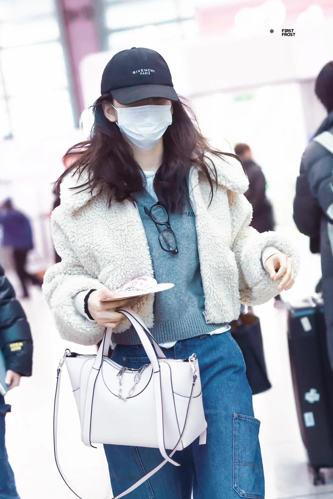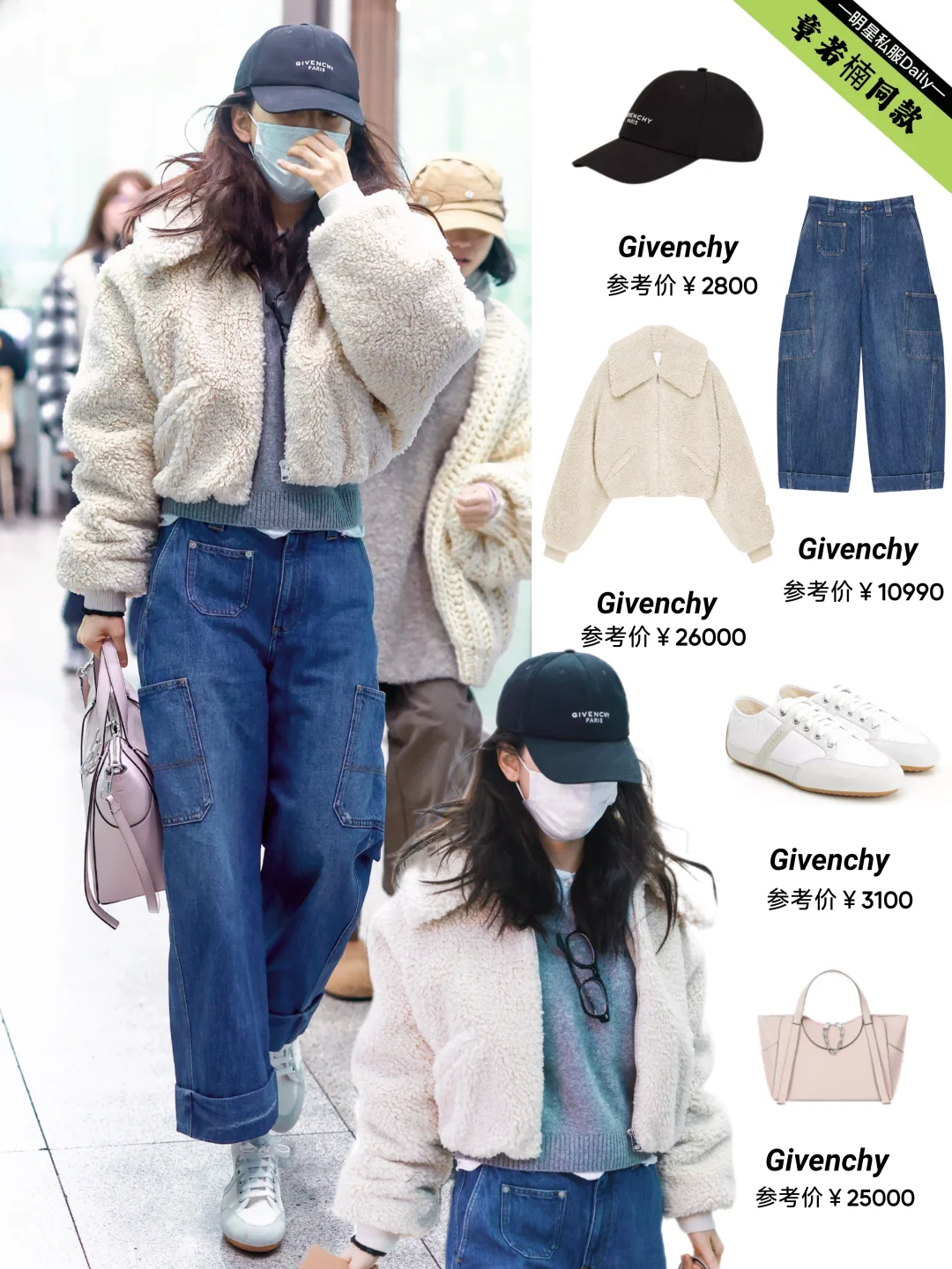 章若楠今日机场私服,短羊羔毛外套搭配牛仔裤装,这一身驾驭得不错! 图片来源 -First_Frost-章若楠