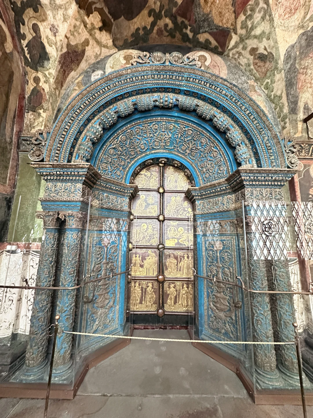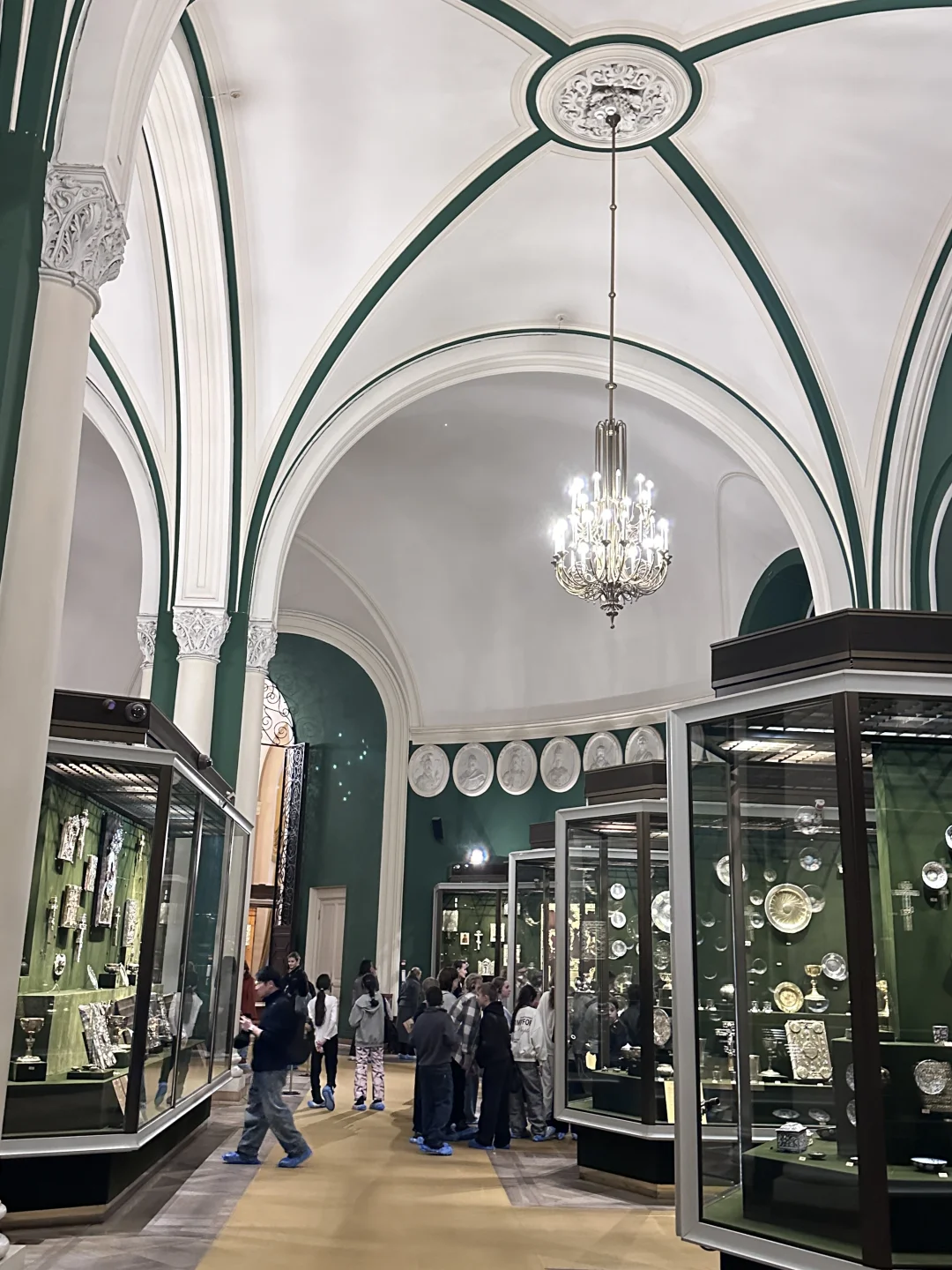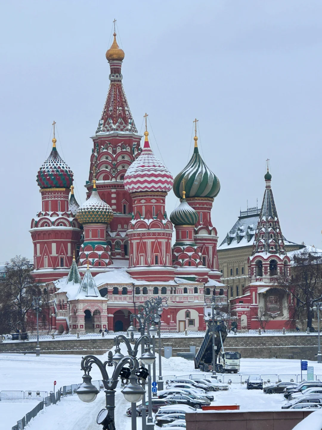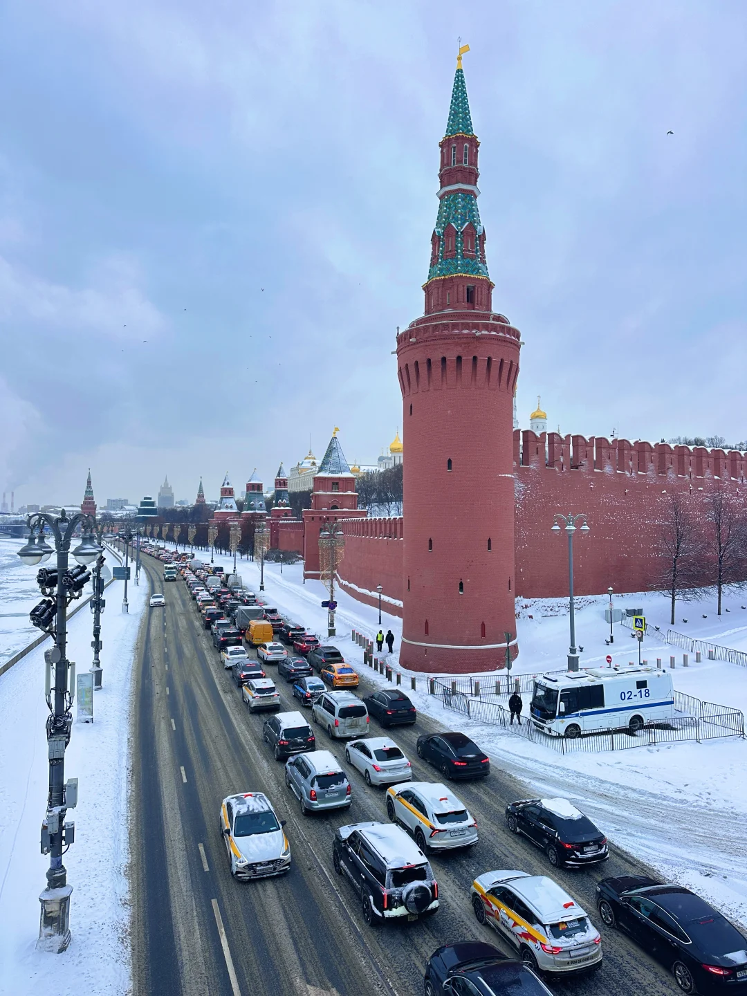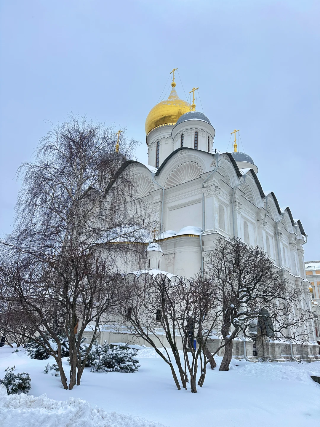 莫斯科之行的终极期待,终于在踏入克里姆林宫的那一刻圆满落地! 早上十点,我们从酒店出发,地铁2号线简直是出行神器,两站直达剧院站,出站没多久就望见了克里姆林宫的轮廓,因为提前约好了下午1点的教堂区参观和4点半的军械库打卡,时间还很充裕,领队索性带我们沿克宫外围慢逛。红墙巍峨地矗立在眼前,砖石被岁月磨得温润却依旧挺拔,每一道纹路都藏着故事,厚重感扑面而来。随手举起手机,无论是红墙与白雪的碰撞,还是墙角光影的交织,张张都是自带电影感的大片,同行的伙伴们快门声就没停过。顺路拐进古姆百货,明亮的穹顶、精致的橱窗瞬间让人眼前一亮,提前踩点伴手礼采购地点啦。 午后一点,教堂区的大门准时为我们敞开,专业讲解的加入让这场参观直接升级!没有枯燥的文字堆砌,一个个关于皇家的轶事娓娓道来,让我们彻底沉浸式走进了俄罗斯的过往。天使报喜大教堂绝对是颜值担当,1489年的老建筑依旧焕发着生机,9座金色洋葱顶在阳光下闪着耀眼的光,精巧得像童话里的城堡,这里曾见证了无数皇族的洗礼与婚礼;转身走进天使长教堂,氛围瞬间变得庄严肃穆,彼得大帝迁都前的历任沙皇都长眠于此,踏入其中,仿佛能听见时光在耳边轻轻低语,诉说着那些尘封的岁月;作为教堂群核心的圣母升天大教堂,更是把皇家威仪拉满!历代沙皇的加冕仪式都在这里举行,殿内那座木制雕刻沙皇宝座,工艺精湛到让人惊叹,每一处纹饰都细节拉满,直到下午两点半,我们才在恋恋不舍中离开。 离军械库进入还有两小时,大家一致决定二刷古姆百货!这次不再是匆匆打卡,而是静下心来精挑细选伴手礼,浓郁的巧克力、别致的冰箱贴、精美的套娃,每一样都让人爱不释手。 下午四点半,军械库的参观准时开启。这座19世纪的俄罗斯古典主义建筑本身就极具看点,对称的结构、精致的浮雕,光是外观就足够让人驻足。可走进内部,才知道什么叫真正的“惊艳”!作为俄罗斯顶级博物馆,这里的珍藏完全超出了我的期待:沙皇的皇冠、宝座、权杖,镶嵌着密密麻麻的珍稀宝石,流光溢彩,华丽到让人挪不开眼;大名鼎鼎的法贝热彩蛋,每一件都精巧绝伦,细节处的巧思让人叹为观止;还有各式盔甲和武器,静静陈列在展柜中,尽显霸气,仿佛能让人窥见那段波澜壮阔的战争岁月。 一天的克里姆林宫之行,从外围漫步的惬意,到教堂区的沉浸,再到军械库的震撼,这场与莫斯科的深度邂逅,将成为最难忘的珍贵回忆。