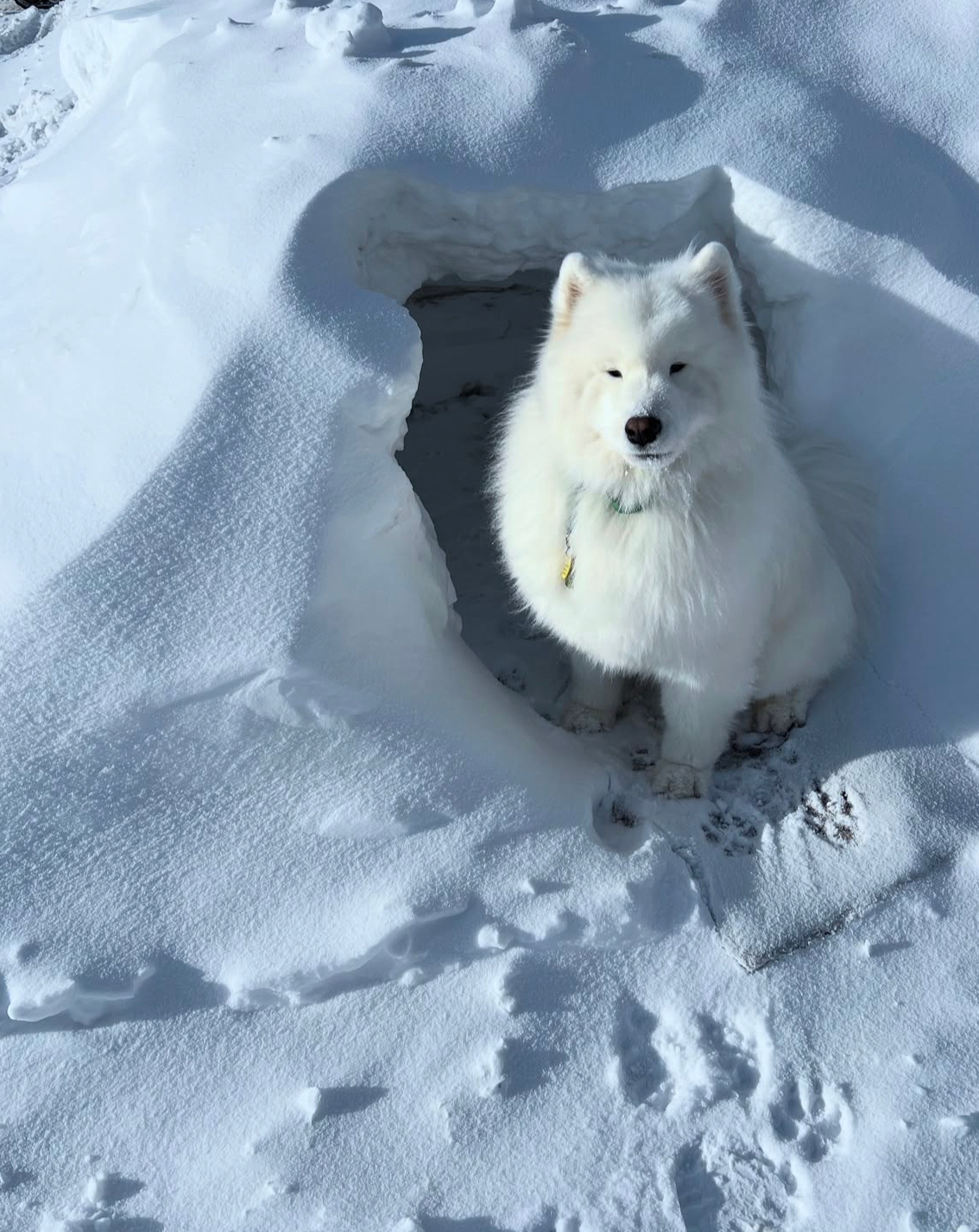 叫到一辆车,司机是只萨摩耶,耶耶看起来是个老司机了