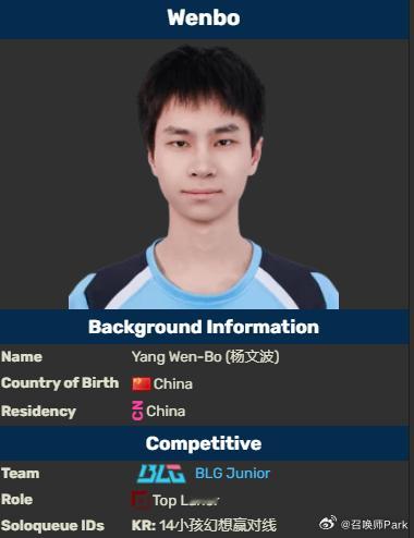 BLG已上调二队上单Wenbo,看看下一场打TES能不能看到登场Wenbo在BLGJ出道,估计他自己都没想到泼天的富贵要到自己身上了。。BLG上调新上单WenboBin疑似离队BLG落后JDG与AL