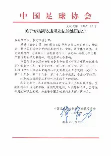搜了半天,才见到中甲裁判杨凯姿作为“黑哨”被终身禁哨的处罚决定。 可这杨凯姿是7年前犯的事,前年就有司法判决,现在出这个处罚,似乎难找到新人。耳聪目明的元宝告诉我,通报说了里面有人,但这些人名并未现身。 球迷对“黑哨”很“关心”,想知道有没有形成共识的裁判上榜,可惜与长长的禁足名单和俱乐部罚分相比,打黑哨还是不太容易的事情。