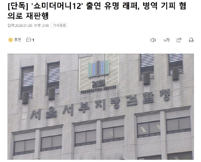 韩国Rapper涉逃兵役被送审SMTMRapper涉逃兵役被送审 据韩媒,,正出演《Show Me The Money12》的某有名Rapper因涉嫌伪装精神疾病逃避兵役被送审及起诉。