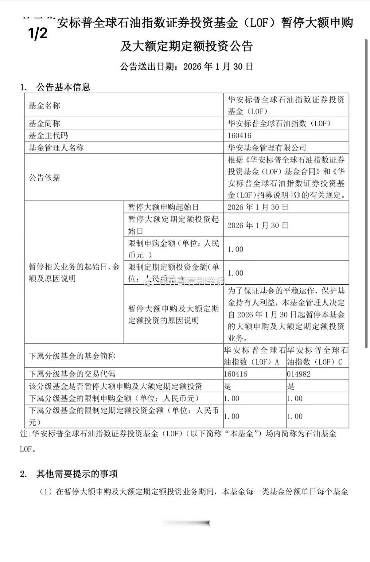 华安石油基金 这得是多讨厌套利 党,搞个限额1,净值2.6,这是来恶心人的,一份都不够基金