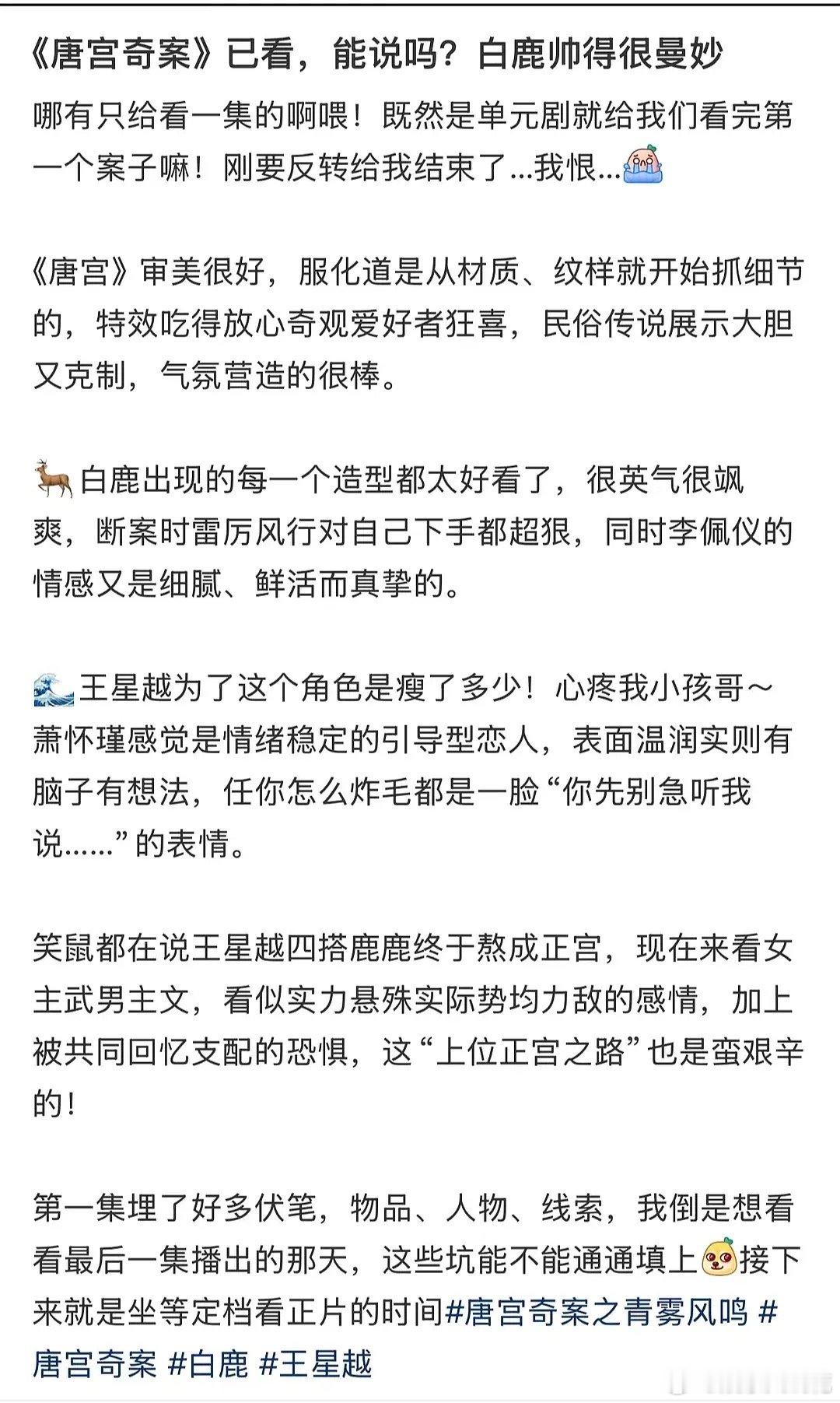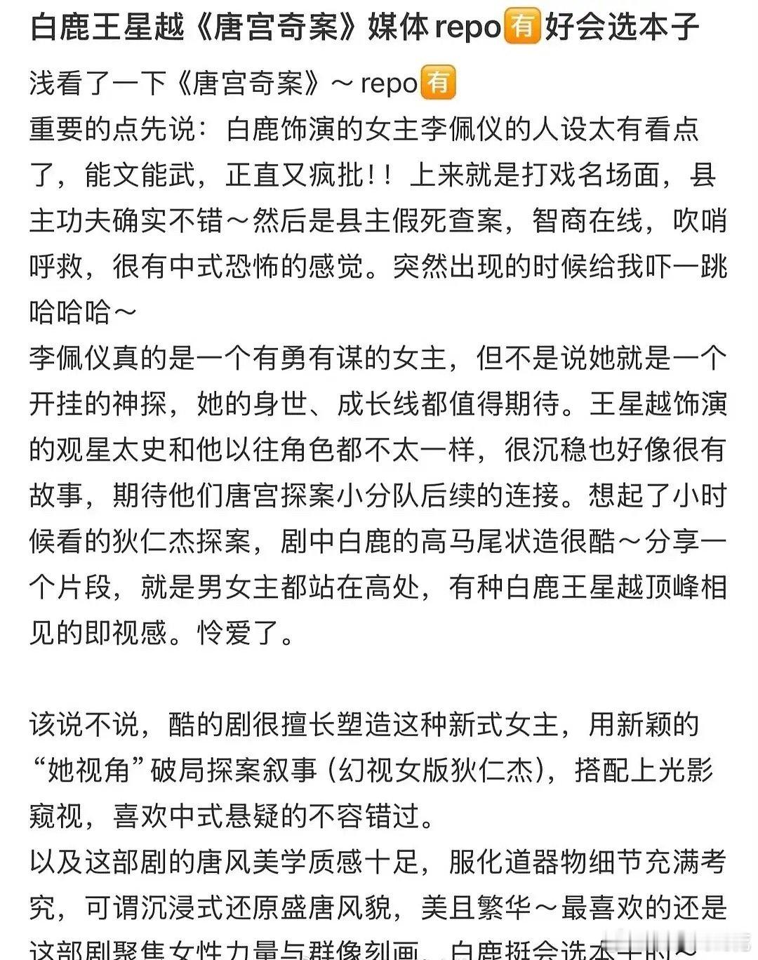 看看白鹿王星越唐宫奇案今日看片会repo如何?划重点‼️白鹿的每一个造型都很好看李佩仪人设超有看点,能文能武疯批女官所有人来期期待这个唐宫