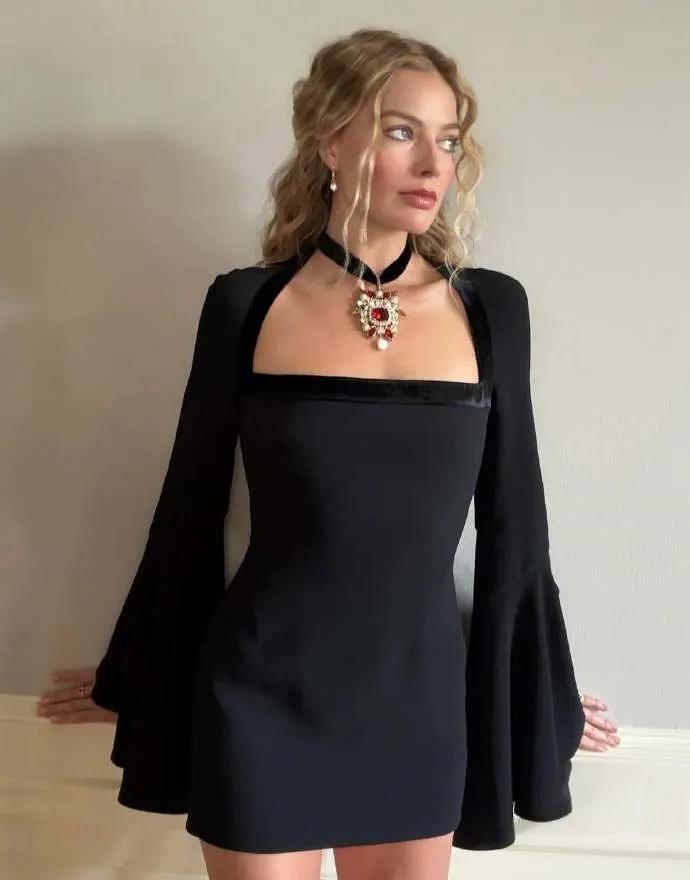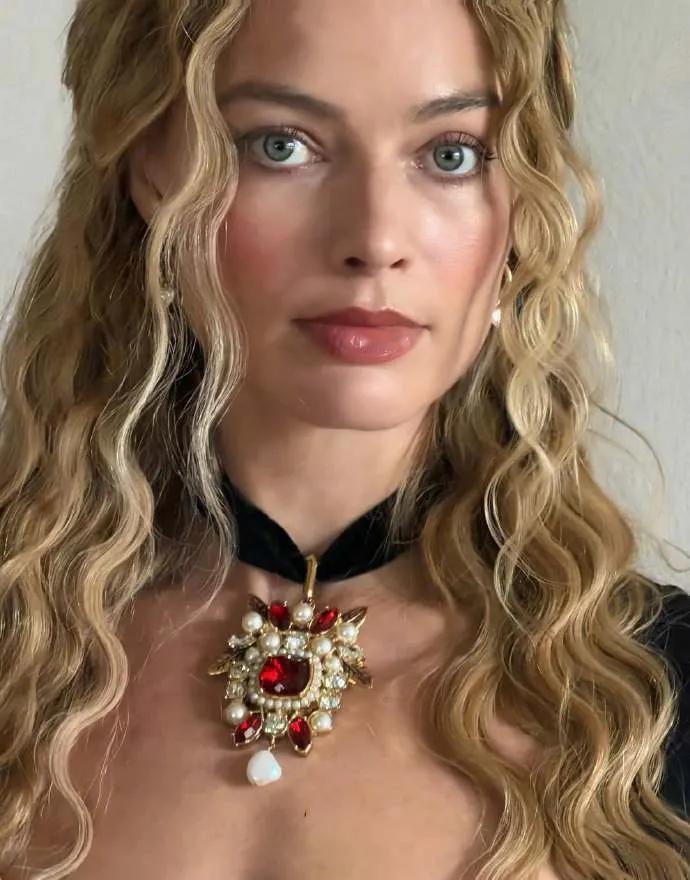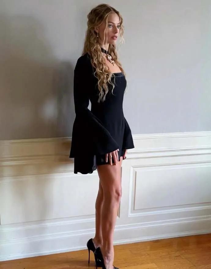 别再盯着玛格特·罗比的黑裙了,那根本不是“时装”,是攻心战术。 告别“芭比粉”,她把《呼啸山庄》的哥特荒原,直接穿在了身上。 这不叫宣传,这叫“角色附体”,让你在电影上映前,就提前感染凯瑟琳的疯狂与偏执。 看那件McQueen蕾丝裙,戏剧化的喇叭袖像黑天鹅的翅膀,裙身薄如蝉翼,直接透出内搭。 这不是单纯的复古,这是把19世纪的欲望,用现代剪裁狠狠地钉在你眼前。 还有那件Cavalli方领短裙,配上天鹅绒项圈和红宝石吊坠,每一寸都在嘶吼着压抑与奢华。 造型师亲自去片场“盗取”灵感,他要的不是复制戏服,而是转译角色的灵魂。 顶级女星的战场,从来不是红毯本身,而是如何把一件衣服,变成一个深入人心的预告片。