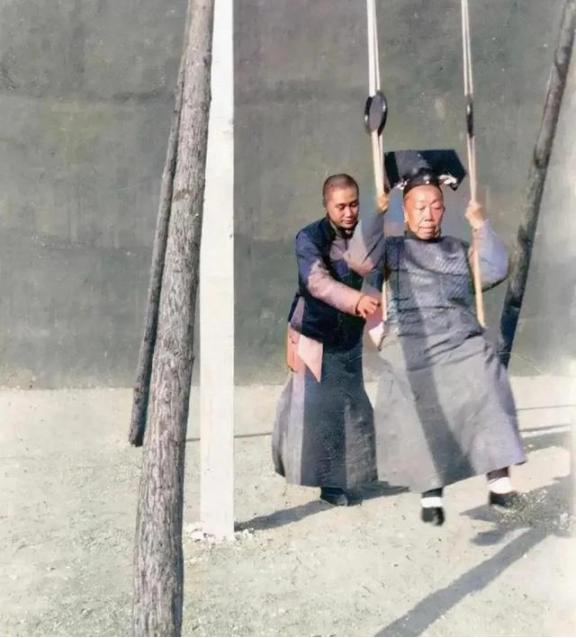 清末时期的紫禁城里,一个小太监正在服侍一名妃嫔荡秋千。原来我们都被影视剧骗了,这才是真正的皇帝妃子,她们也并非个个都是有着倾城容貌的绝色美人,也并非身着锦缎华服,真是让人无比震惊! 清朝选秀制度跟明朝大不一样,主要限定在八旗内部。满洲、蒙古、汉军八旗的女子,十三到十七岁必须参加挑选,没经过选秀不能私自婚配。选秀以家族门第为主,出身越高,获封位分机会越大。容貌要求端庄,身体要检查,包括气味这些细节,以维护宫廷礼制。入选的或留宫侍奉皇帝,或指配宗室。落选的回家,但仍受旗籍约束。八旗女子入宫后,服饰按等级分,低位者穿朴素旗装,颜色素净,样式简单,体现满洲旧制和朝廷节俭要求。 张玉春出身普通包衣家庭,十三岁进宫,从底层宫女做起。她头脑灵活,办事周到,先在慈禧太后身边负责日常琐事。慈禧太后去世后,她转到隆裕太后处,继续服侍。隆裕太后去世后,又安排到端康皇贵妃身边。她资历深,在宫女中地位稳固,常照看年轻皇子皇女。 清末一张老照片记录了真实一幕:紫禁城御花园一角,老宫女张玉春坐在秋千上。小太监站在身后推着。她灰色长衫无绣饰,头发简单盘起,面容普通,已是中年妇人模样。这不是什么妃嫔,而是长期服侍多位主位的宫女。 因为资历和受信任,她能在宫中偶尔放松。照片里没有华服美人,只有底层人物的平凡瞬间,与外界想象的宫廷奢华形成鲜明对比。清朝后宫多数女子命运受制度制约,生活拘束,少有自由。皇帝后宫像围城,外面人羡慕荣华,里面人常感压抑。 慈禧太后、隆裕太后相继去世后,张玉春在端康皇贵妃身边继续当值。她管理宫女事务,维持寝宫秩序。清王朝覆灭,紫禁城成逊清小朝廷,她仍留在宫内。资历让她在宫女中受尊重,年轻皇子皇女对她客气。她一生未嫁,未离开紫禁城,直至自然终老。没有高位丰厚积蓄,但凭长期服侍,获得基本礼遇。