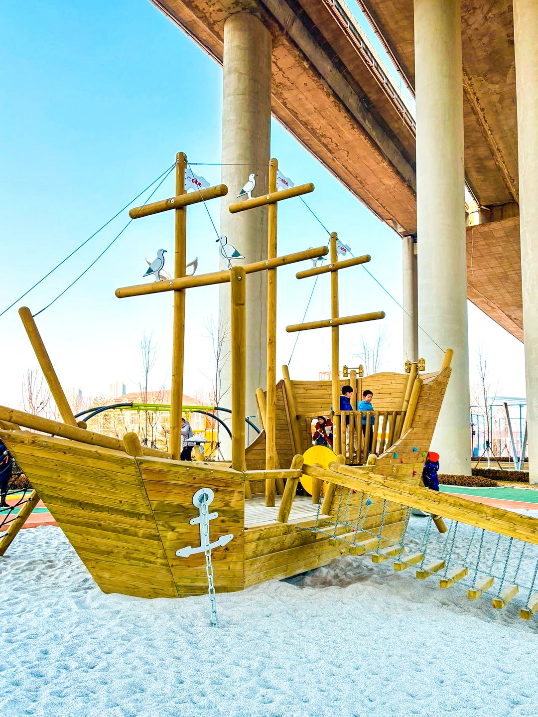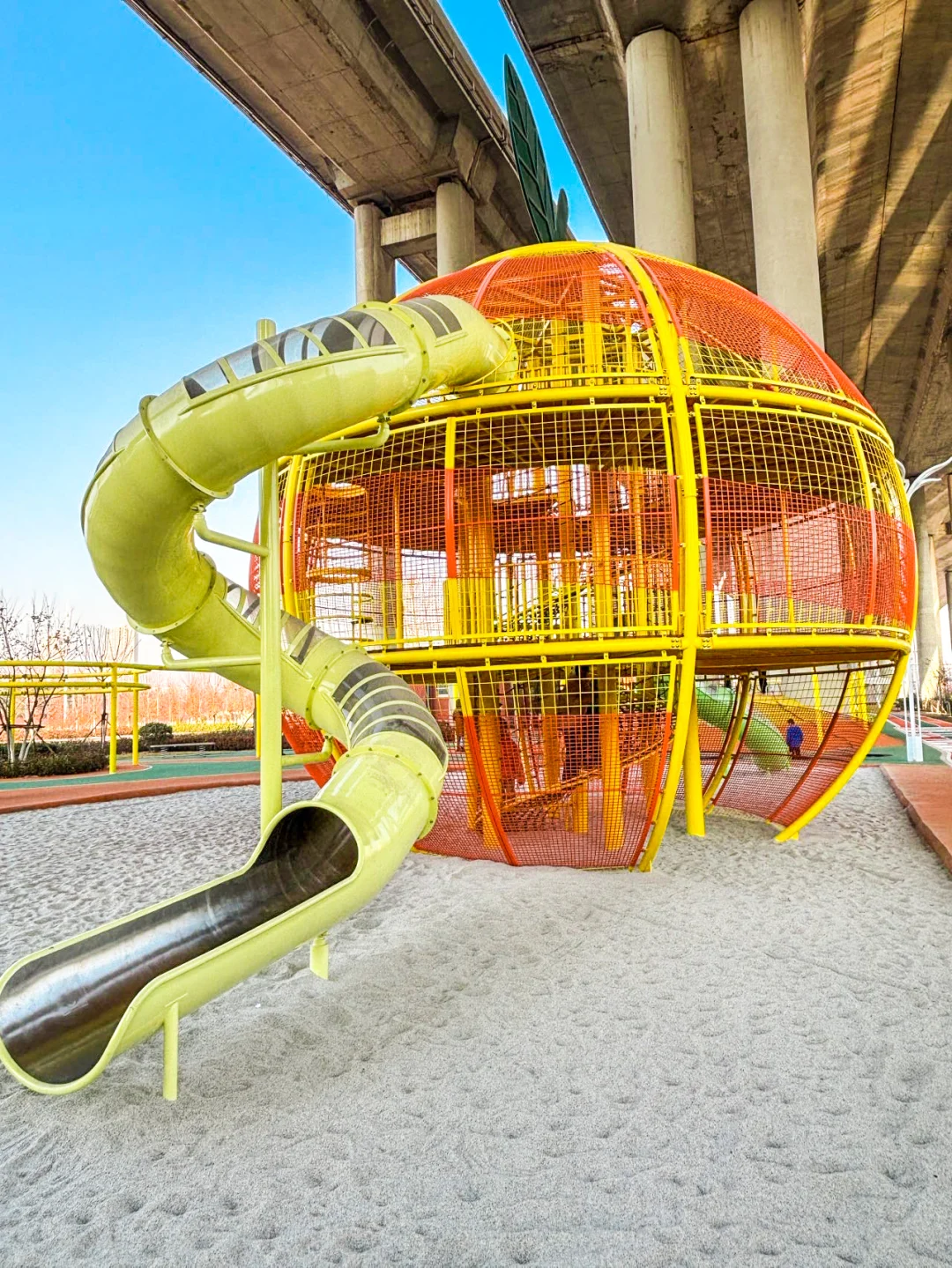 青岛娃娃们终于考完试啦 开启美好的寒假生活 先去小朋友一直念叨的桥下游乐场 👏🏻好玩的滑索 👏🏻玩不够的滑梯 👏🏻各种秋千,现在也不需要排队啦,人很少 👏🏻攀爬网,海盗船我们都可以玩上一整天 👏🏻游乐场再继续往里走是各种彩色打卡墙,超出片 📍O-park橙岛时尚公园,停车场已开放使用,免费哦 🔔小tips 👉冬天还是有点冷,记得多穿点,我们穿了新年套装,红红火火迎接新年啦 👉我们周末去的,人不多,带好水补充能量哦 👉距离李村大集很近,步行5分钟,逢阴历二,七大集,可以赶个大集哦