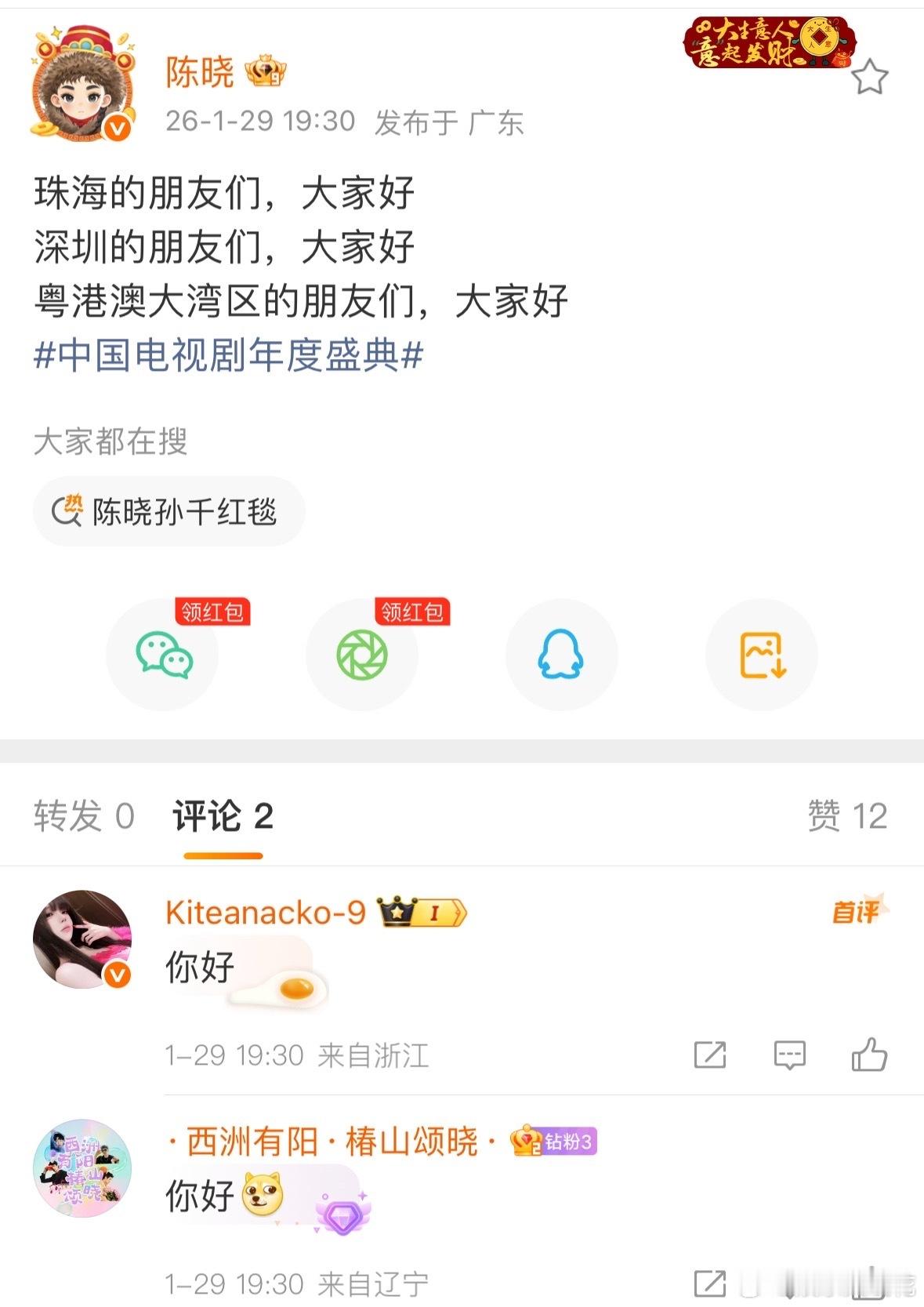 陈晓紧急公关陈晓为嘴瓢道歉陈晓因为在盛典上嘴瓢叫错了城市名字下来后就紧急发博